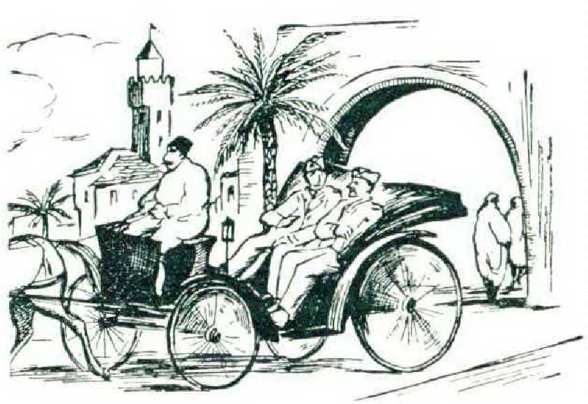 French gendarme directing traffic could easily have stepped from his box right into the carriage. “Pardon, Capitaine?” he said. I asked him the way to the address. He gave the driver quick staccato directions in Arabic. The driver saluted the gendarme. The gendarme saluted me. I saluted the gendarme. “Plaisir, Capitaine,“ he said.