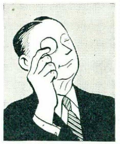 The next day I went to an eye specialist. I told him frankly why I wanted to get rid of a perfectly practical monocle. Spectacles were out of the question with a condition like mine. There was, however, the contact lens, which is worn under the lid, directly upon the living eye. That, he warned, would be a nuisance since it couldn’t be worn for more than a few hours at a time, requiring frequent immersion in a special solution.