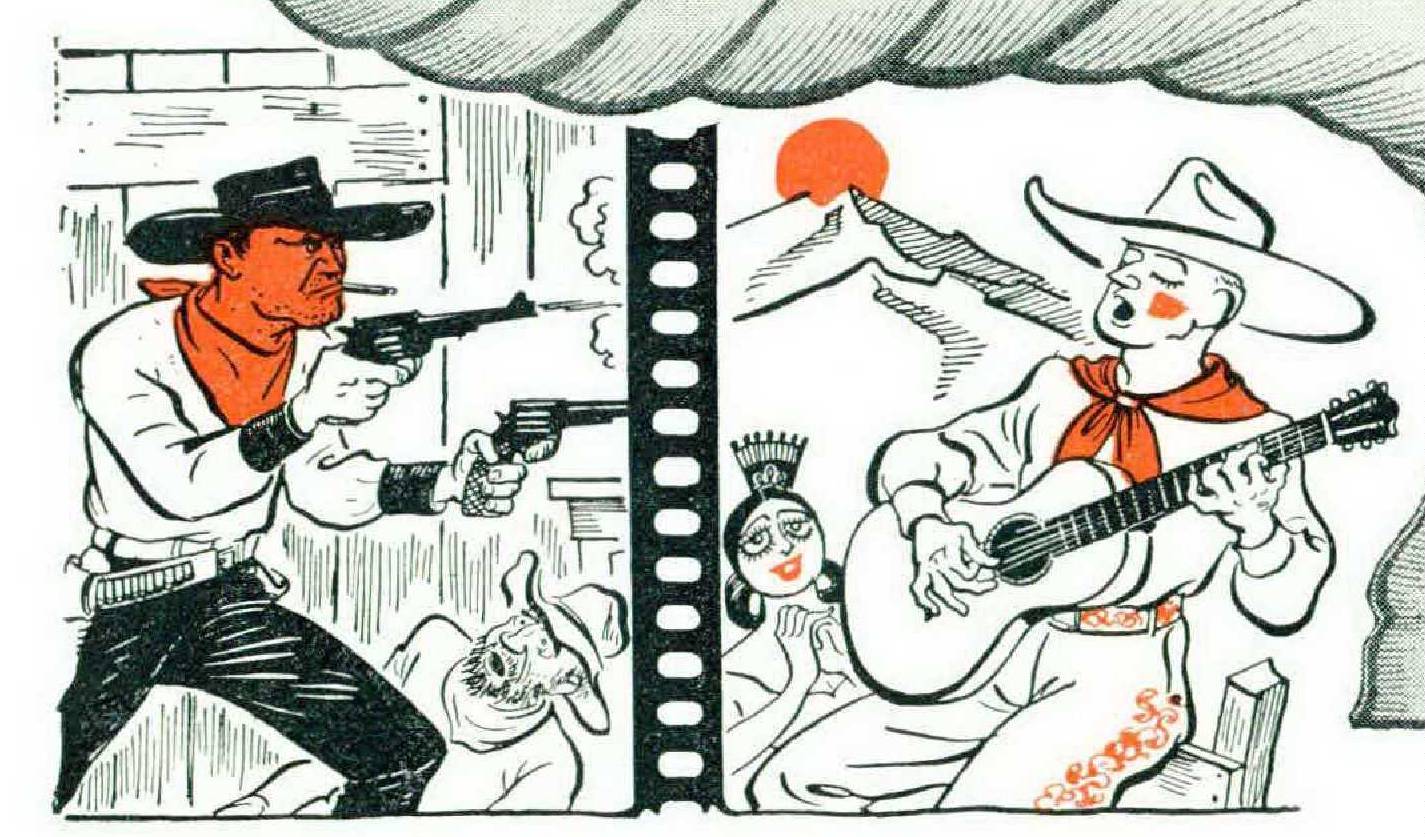 It were better, the producers reasoned, if the hero carried no guns at all. They gave him, instead, a guitar (pronounced “gitter”). They tailored him to the nines and barbered him until he glowed a cherry red.