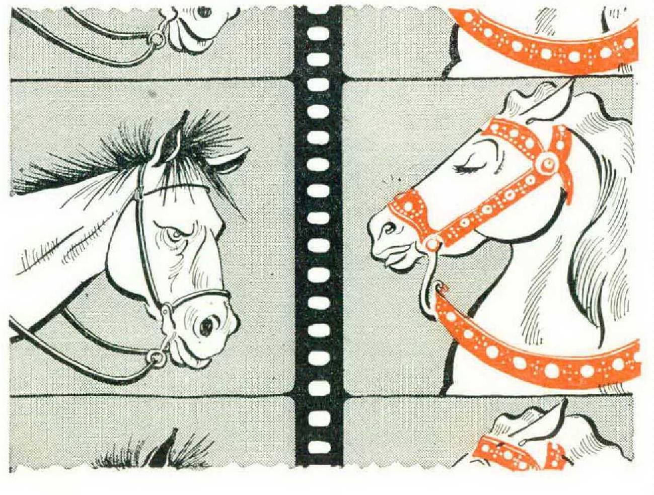 The Kid in his day rode anything that had four legs and hair. Occasionally, when it was fractious, he’d growl, “Whoa, yah jughead! Stan’ quiet or I’ll let yuh have one on the honker.” But it was obvious that the new hero couldn’t ride a common hoss, a bronc, or even a critter. It had to be a Sunday hoss, caparisoned in a thousand dollars’ worth of saddle and tack, resplendent with silver filigree. This photogenic animal, like his master, now has a double who does the more perilous riding for him. He arrives on location in a padded van and eats nothing but irradiated barley soaked in sherry.