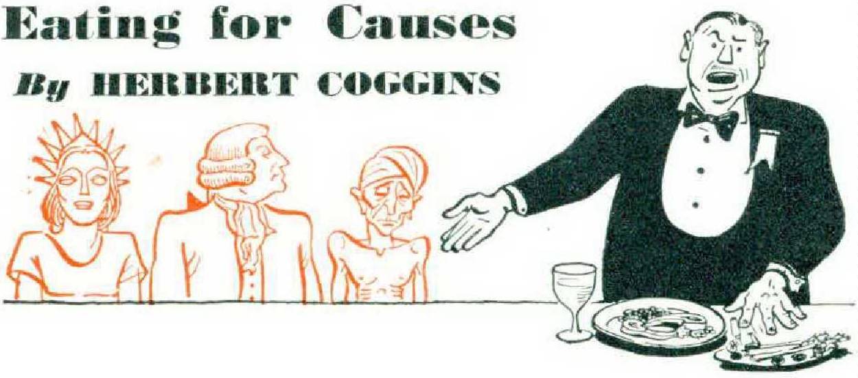 A MOST suitable vocation, with a great and worthwhile future, is one which I have classified as constructive gastronomy. In a way I pioneered it. I assume no great credit for it, but much of my life has been devoted to eating for other people — ample and nutritious dinners for the benefit of the poor and starving, for the downtrodden and oppressed, and for worthy persons and noble causes.