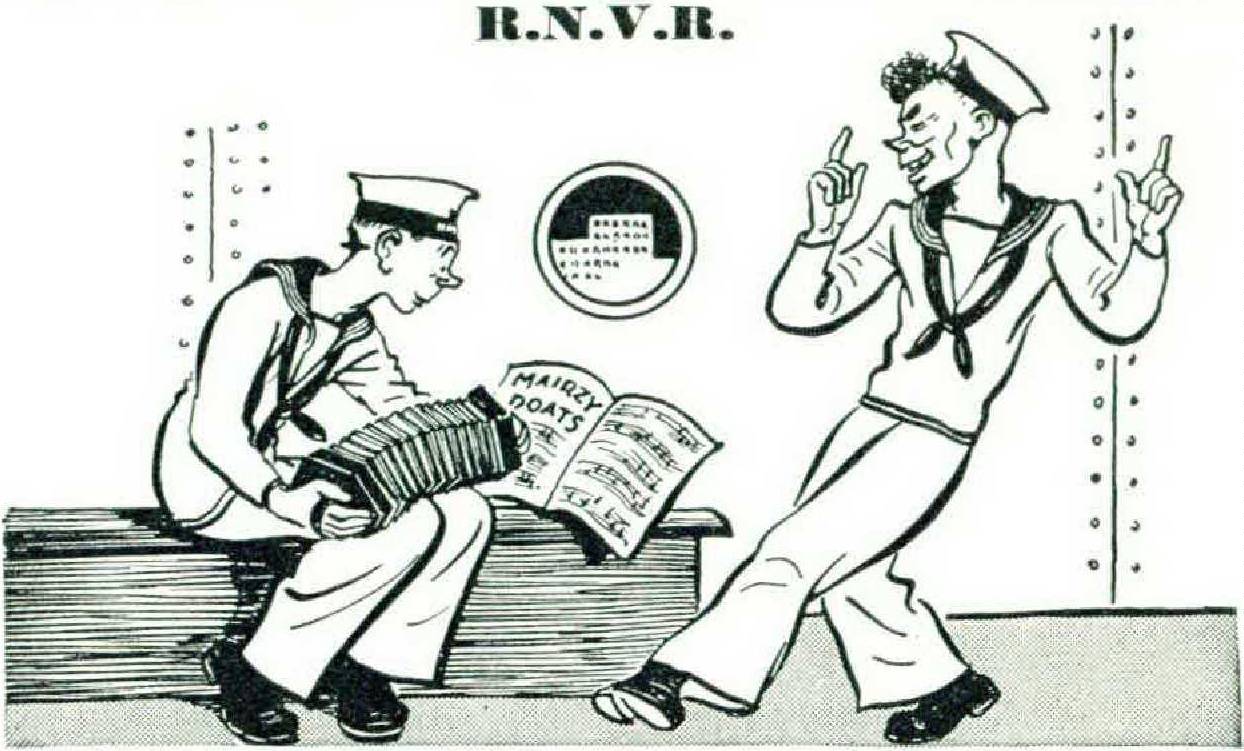 The American brand of entertainment is another thing which has made its effect felt. Sing-songs in the messdecks, after working hours, used to have a rather staid British air. They might include harmonica solos and a chorus of “ Rule, Britannia!” but that was about all. Now it is different. Snatches of cross-talk, lifted wholesale from a current and none too refined vaudeville show, drift up to the wardroom. The tunes which are now popular concern Basin Street, Choo Choo Baby, and mares eating oats, and they seem to have an urban quality which is, to say the least, a long way from the sea-shanty of tradition. An embryo jitterbug class has already given the ship’s doctor some extra work, and will probably be in full and acrobatic session by the time we leave.