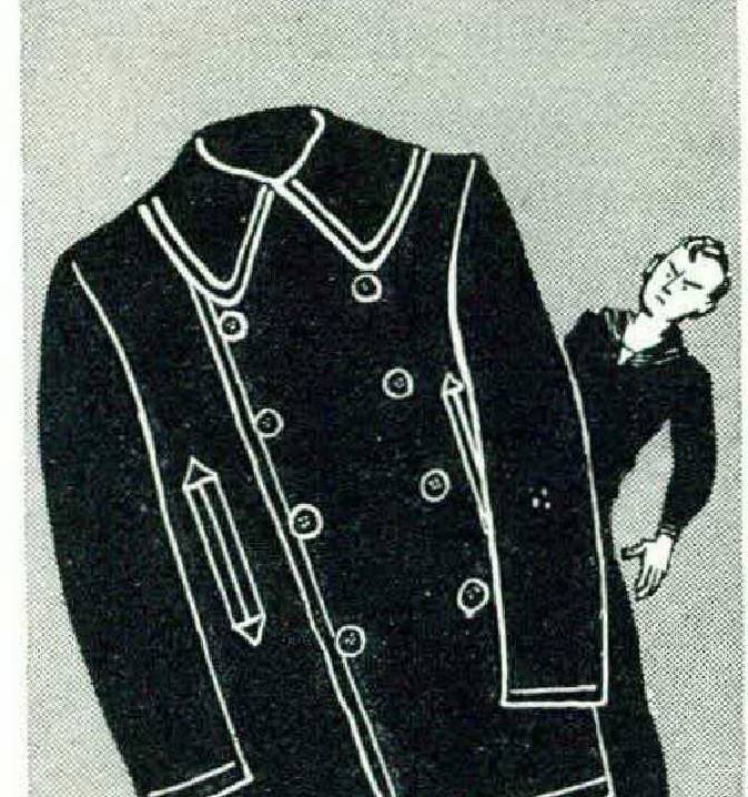 Ever watch a bluejacket maneuvering to put on his close-fitting, short coat without mussing the big, awkward, to say nothing of perverse, collar of his dress jumper?