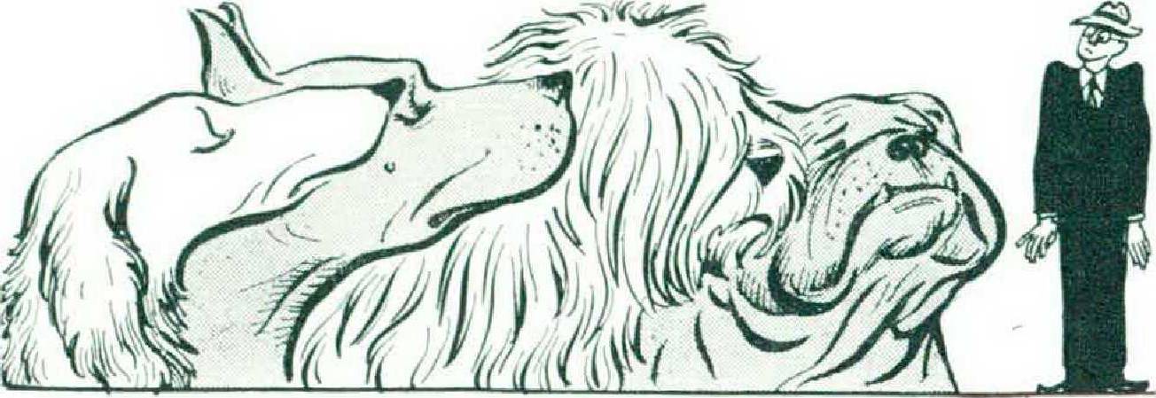 My third hound also ended up at the vinegar factory, but I have forgotten how we acquired him. His name, I recall, was Bardolph. He seemed to he a pretty good dog if you overlooked a rather simple smile and a certain vagueness in his general attitude. For several days after his advent we had a lot of fun together, but after a week or so his vagueness look on more than a touch of lunacy and I began to have some misgivings. I covered up for him as well as I could, but one afternoon our telephone rang urgently and after my mother had taken the message I could tell from her expression that my pup was, so to speak, a dead duck.