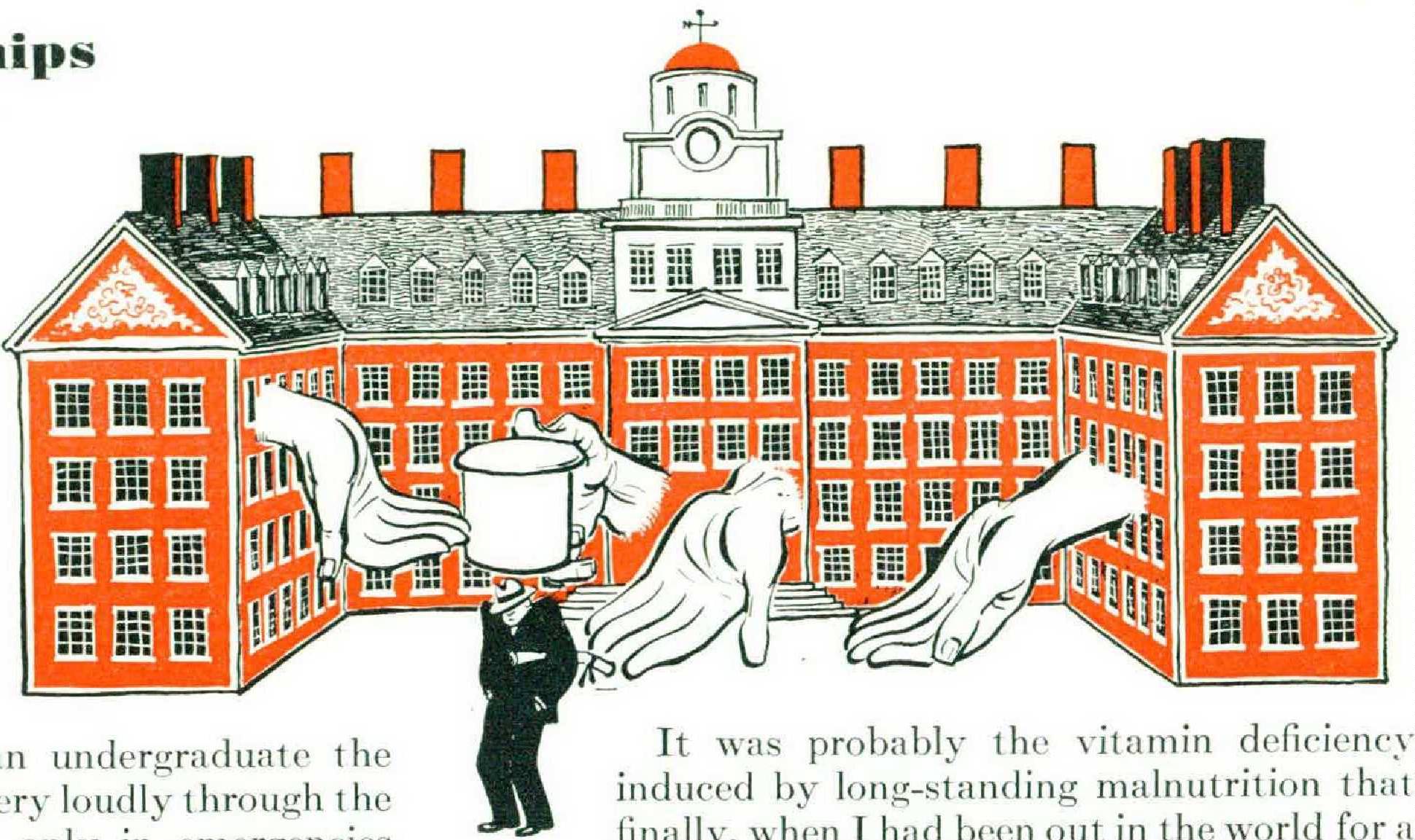It was probably the vitamin deficiency induced by long-standing malnutrition that finally,when I had been out in the world for a full three years, drove Mater to the point of reminding me that I had never paid for my education; not really. “You will be the first to admit that the amount of your tuition didn’t represent the value of what you got out of your four years at college,” she wrote. As it happened, I had begun to think the same thing, and had been thinking of inquiring about a refund, if only a few hundred dollars. In the end I decided that the best I could do was accept the stalemate.
