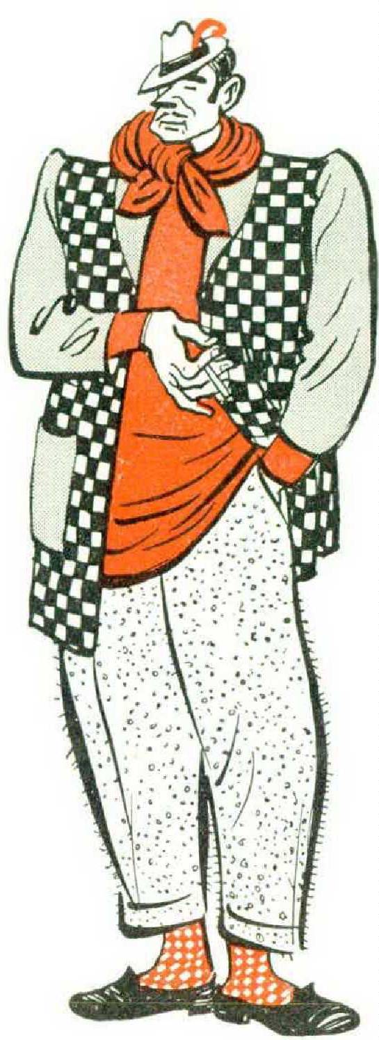 The spectacle of an errant client in a wrap-rascal called an Acapulco, spot-welded out of Coquimbo cloth, is maddening to the honest draper. Custom tailors are making only enough topcoats to keep the franchise while their tears fall on every yard of selvage. Their former patrons are wearing Batllefront Jackets, Don Cossack Dolmans, and Eisenhower Duo-Casuals. Ask your tailor to make you a Partisan Jumper with Hawkskin front and Gabeteca sleeves, and sitting there, cross-legged in the correct position for it, he may be tempted to an act of slit-belly with his own shears.
