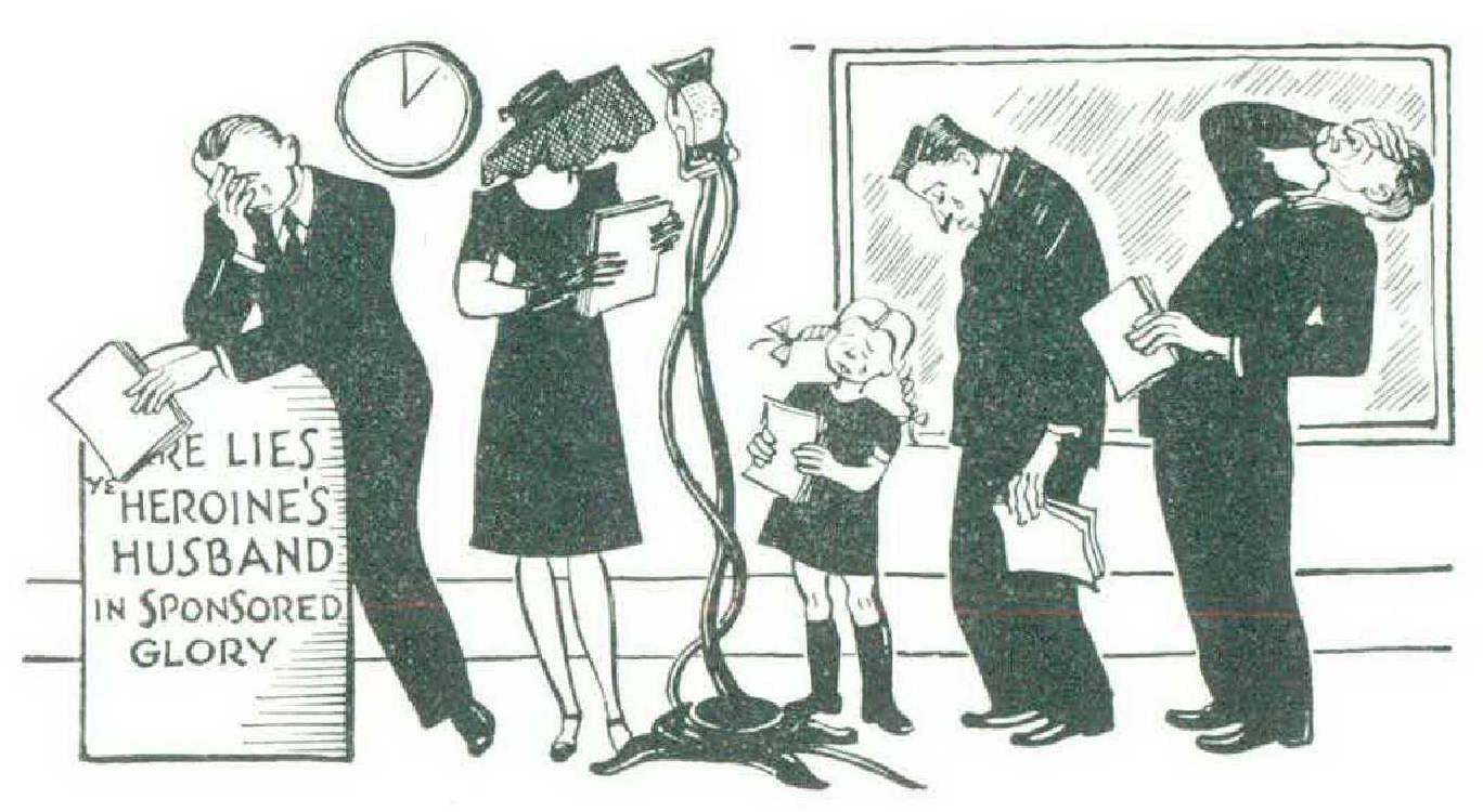 The war altered so many things that a lot of people had been afraid that radio’s “soap-opera” programs would fall victim to the changing times and be replaced by some good musical or variety shows or by a comedian with funny material. The heartening news is that all such novelties are out, and that postwar radio will do its best to present every snide lawyer, grief-crazed widow, and embezzler who ever succeeded in creeping into the heart of the pre-war radio public. Of all these popular favorites, the widows are easily the most important, partly because of their great numbers, but mostly because of the essential hopelessness of their position.