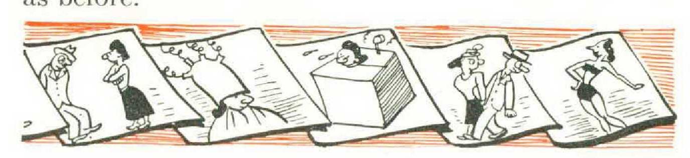 It’s a fascinating prospect, and I say more power to it. But, I’d have liked to see enclosed within that tube about five thousand gag cartoons dealing exclusively with the domestic scene— the husbandwife-children-house-car combination. How close to truth could a perceptive archaeologist get from an examination of such material? If I shut my eyes hard, sweep my mind vacant, and if the telephone doesn’t ring, would his deductions read something like this?