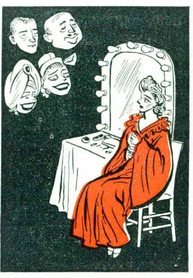 A leading lady’s dressing room. The leading lady, wearing a kimono and full stage make-up, has just seated herself before her mirror to clean her face. There is a knock at the door. The leading lady looks round, sees that her maid is absent, and speaks: —