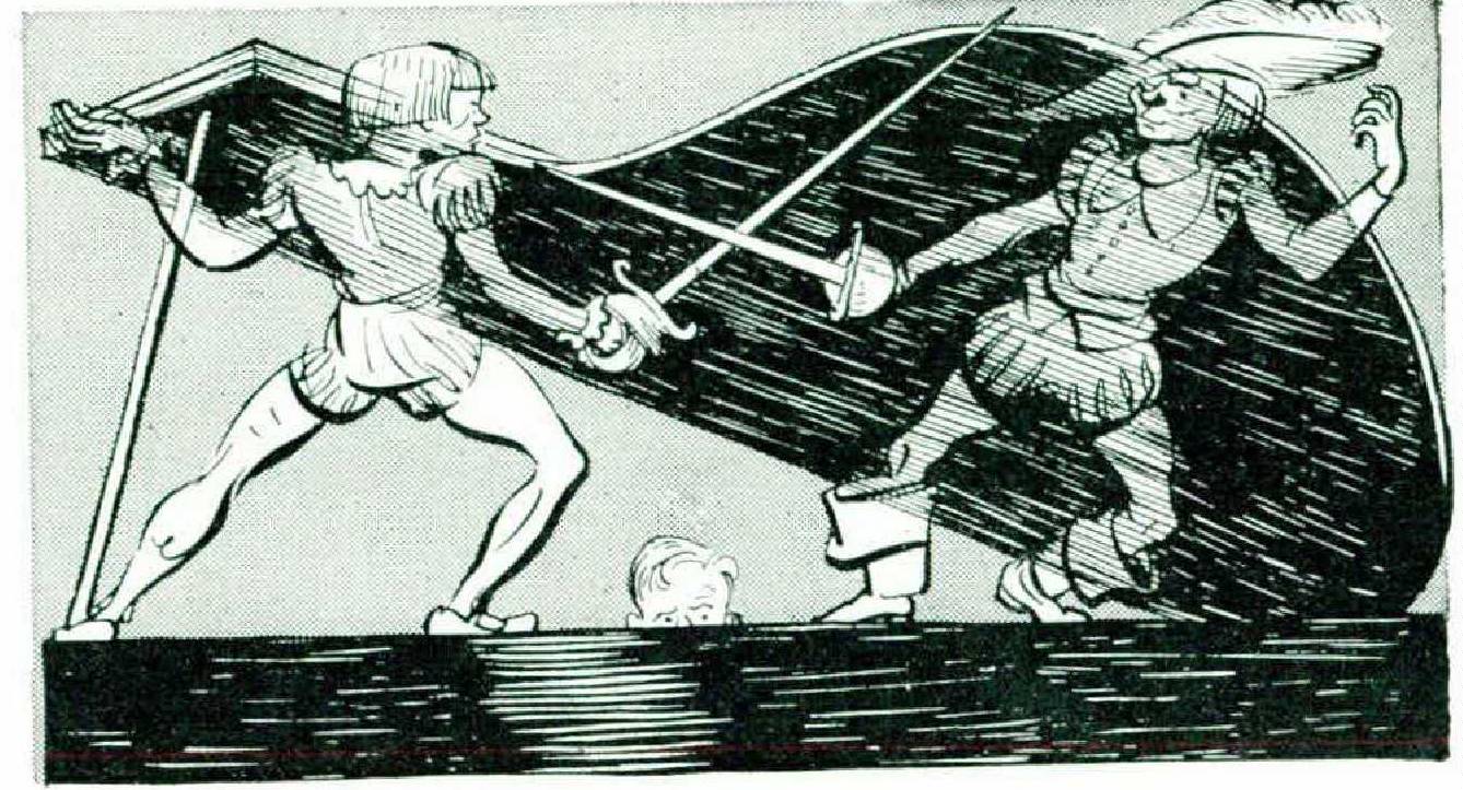 I came back to the village in the Ukraine with a rich store of impressions. I began to play theater with my village pals. We would get together and think out a play and then act it for our parents. The plots were simple and invariably included a duel — the result of Faust’s duel with Valentine. The plays we acted gradually acquired a large quantity of property effects. In a box in the storeroom we kept hats, old coats, all kinds of costumes, masks, swords, and toy pistols. A lamp shining behind a framed piece of gauze represented the moon; a camouflaged barrel from which water poured into another barrel represented a waterfall; boughs and twigs from the garden represented a forest. We had a mask and an old fur-lined coat turned inside out for the performer who played the role of the bear. Also burned-cork mustaches and beards.