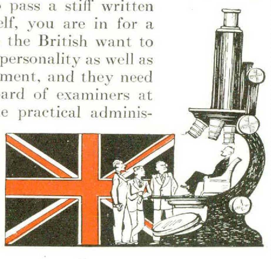Before the house party ends, you have a personal interview with each of the examiners observing your group. The chairman goes over your record and achievements with you, asks why you want to enter the civil service, what department you’d prefer to join, what you propose to do if you aren’t accepted, and so on. An hour with the psychologist is devoted to your past history from a personal viewpoint — your family, your childhood, how you got on with your parents and brothers and sisters, your likes