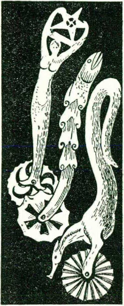 Most of the whaling scenes and ladies of fashion cut into the teeth have turned out to be bookish, and the busks, though admittedly charming, are naïve and folksy. The jagging wheels, as native a dish as the pies that they cut, were more often than not the work of talented carvers. In New Bedford, a pie wheel is set into a handle carved in the shape of a gull by some abstract Brancusi. Other handles are dowitchers, coots, and curlews, all cleanly cut and convincing; so convincing, in fact, that skeptics have wondered if the known Chinese skills of the time were not sometimes hired. There are pale Attic hands, archaic fish, mythological dogs; and all these entrancing forms of bone sculpture are hooked up to that native invention, the notched wheel used for cutting out pie crust and crimping the edges. If in the mind of the sailor the busk stood for Woman, the wheel stood for Home.
