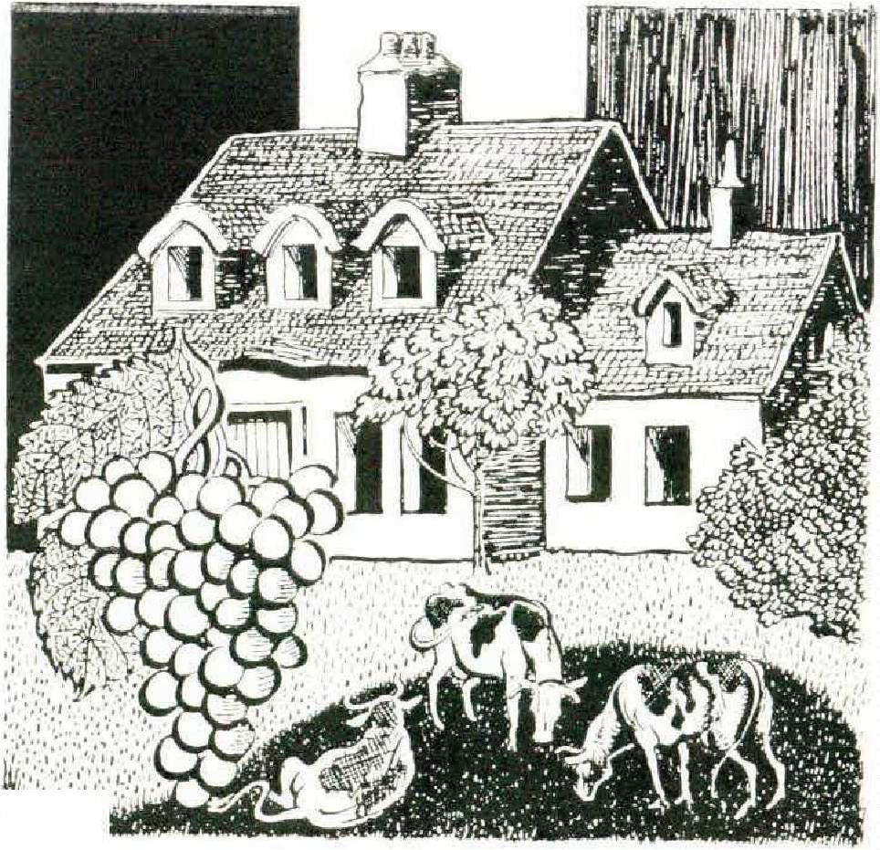 Carennac is peculiarly adapted to echoes, and the drum sounds like a regiment, the church bell like Notre Dame, my typewriter in the garden like woodpeckers at work in a sycamore grove. After listening to it in rancorous silence, the raven has fallen straight down out of the cherry tree and, abandoning the pretense of imagined threats to his security, is off to look for food again under the grape arbor. This is a country of grapes that produce plain, outspoken wane which the farmer likes to liberally color his soup with at the dinner table. It is also the district for pigs and green prune brandy and truffles, each of which Madame or Monsieur Jacquet knows how to handle at the proper time.