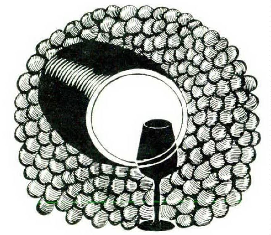 So what with tasting and talking, the four of us worked our way into deep afternoon. We learned that Don Gonzalo had acquired a bicycle, as much a mark of success in his country as a car in America, We heard that his marriage would follow promotion and we hoped both were imminent, the boy a capable, well-met fellow and the dark-haired girl in his wallet. decidedly pretty. We listened, above all, to good talk of the grape: the “while" Palomino, sweet, topaz yellow: Pedro Ximonez, rich in grape sugar: the fat Muscatels from the sandy regions. Each processed grape has its seasoned lover.