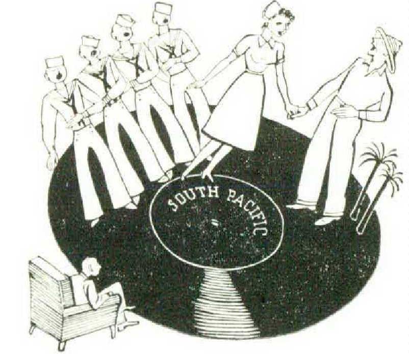 Luckily for Finian’s producers, a new customer was in the offing. Columbia, at the astute urgings of its executive vice-president, Goddard Lieberson, paid the tariff, 10 per cent and all, and recorded the show. Finian was no Oklahoma! but it was a fine, flavorsome opus, graced by Ella Logan and “How Are Things in Gloccamora?” It paid its way and then some. Decca was now out of the show-album business and Columbia was in — and it had beginner’s luck. The next year brought the eminently phonographic, naughtily witty Kiss Me Kate, still one of the best show albums extant. But it was soon overshadowed, for shortly thereafter Rodgers and Hammerstein’s Oklahoma! triumph was menaced by the only team which could possibly menace it — Rodgers and Hammerstein. Their offering this time, of course, was a production based on a Pulitzer Prize short-story book by James Michener, called Taies of the South Pacific.