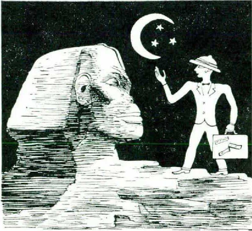 At this point, I should like to interject a word or two about the legend that the tourist is bound to be swindled in Cairo whichever way he turns. There are, to be sure, in the streets of Cairo, a host of wily entrepreneurs who are infinitely skilled at fleecing the gullible traveler. But anyone who has truck with these characters is, by definition, a sucker. For unaccountable reasons, even hardheaded Americans, as soon as they breathe the air of Egypt , are prone to imagine that they are being devilishly astute when they fall for the pitch of some street-corner shyster, who leads them to a “little shop” where they are offered “star sapphires” for a song and ”Chanel Numéro Cinq” for less than its wholesale price in Paris. Anyone who buys his goods and services from reputable sources, and counts his change when dealing with taxi drivers and such, will, I am sure, leave Egypt without having suffered appreciably from fraud.
