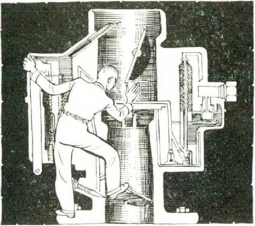 A perfect example is the carburetor on the family car. Here is a component with an extremely exacting assignment to fill — a marvel in practical, bread-and-butter engineering, but a technical blind alley as far as the designer is concerned. Look at the basis of the problem. The liquid gasoline used for power in an internalcombustion engine must be mixed with a certain proportion of air in order to burn in the cylinders. Is it logical to mix the gasoline and air in a separate device outside the cylinders and feed it to them through a tortuous network of tubes? This is the situation with a carburetor.