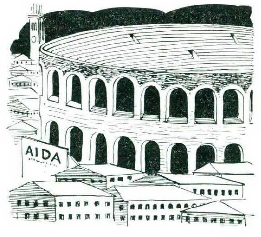 There are also one or two cinemas where the same principle is applied. But who wants to go to the cinema in Verona, which is the richest and most exquisite of all the little North Italian towns? Twice every summer, in June and August, the Veronese furnish a spectacle of great, magnificence, a week of grand opera in the Roman arena which is the best-preserved of its kind in the whole of Italy. Most of the singers are drawn from the Scala in Milan and they stage an Aïda to end all Aïdas, bathed in the light of a real full moon, accompanied by the pealing of real church bells, and enlivened by a troupe of real elephants.