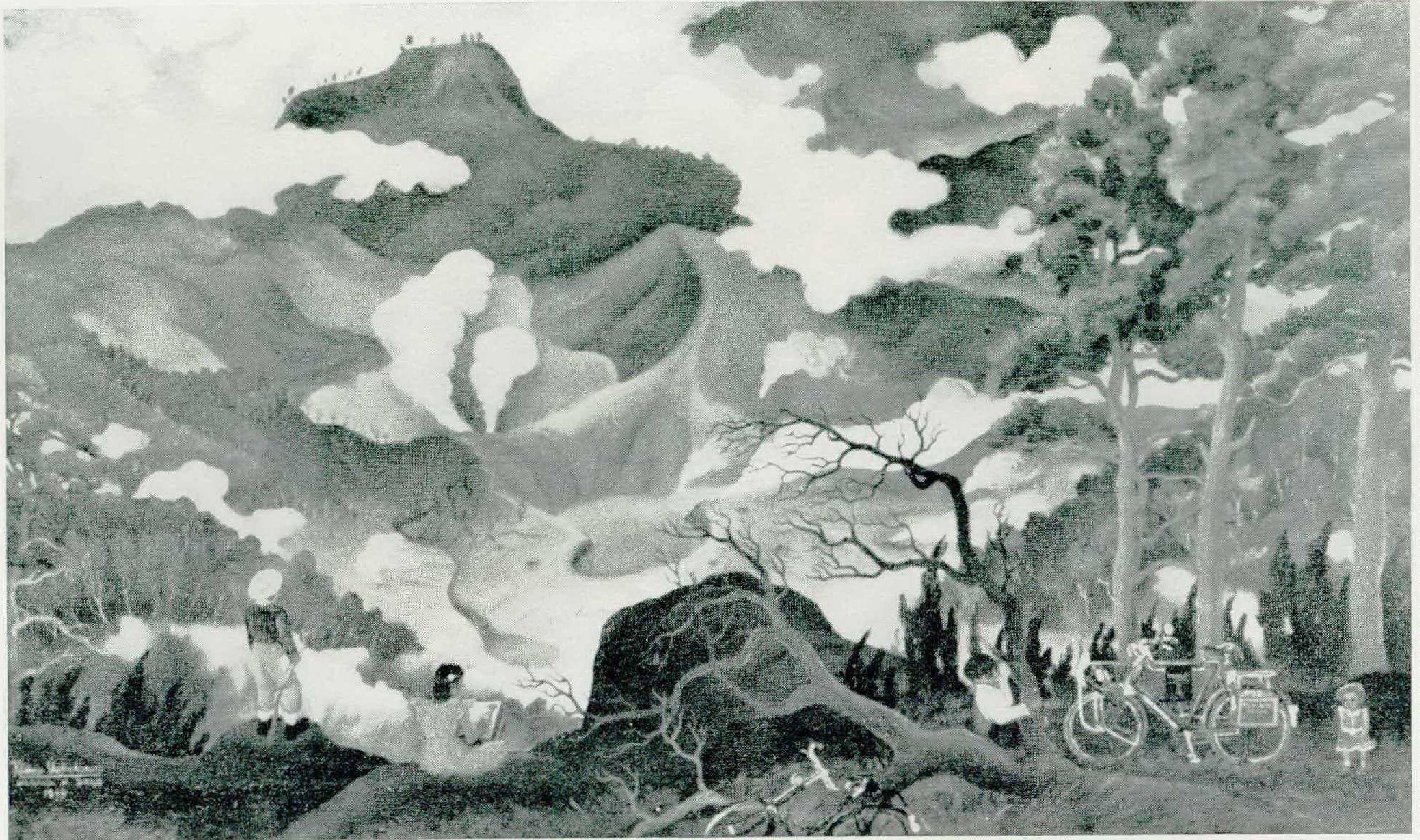 In the early years of this century there emerged the school known as “Oost-lndische Kunst (East. Indian Art). Typical of this group were Kuscnda, Adolfs, and Dezentje, who attempted to depict Indonesia as a land of exotic romance and untroubled beauty. Verdant rice paddies and purple mountains . . . coconut palms and picturesque villages . . . alluring, smiling, half-naked girls . . these were favorite subjects. I here was little attempt in the Oost-lndische school to go beyond an easy pictorial appeal.