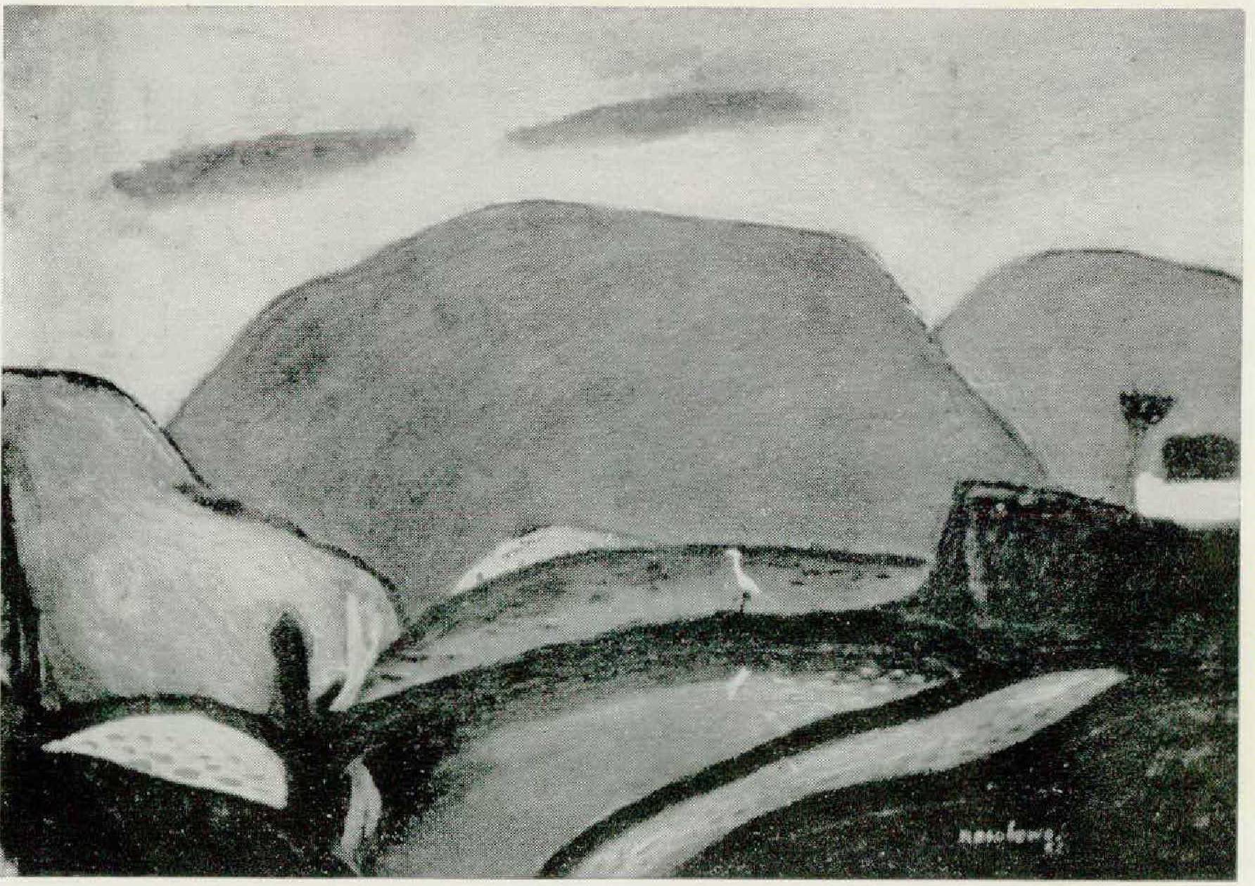 During the occupation of 1942 to 1945, the Japanese authorities tried to use Indonesian artists for propaganda ends. Although contact was encouraged between artists of both countries, this interval had little spiritual influence. But the systematic organizat ion set up by the Japanese did, it must be admitted, hasten the development of a number of new artists. Among them were Aflandi (Figs. 1 and 2), Rcsobowo (Fig. 13), Hendra (Fig. 10), Kusnadi, Barli, Kerton, Mochtar Apin, Baharudin, Harjadi, Sularko Hadi, and Ngendon.