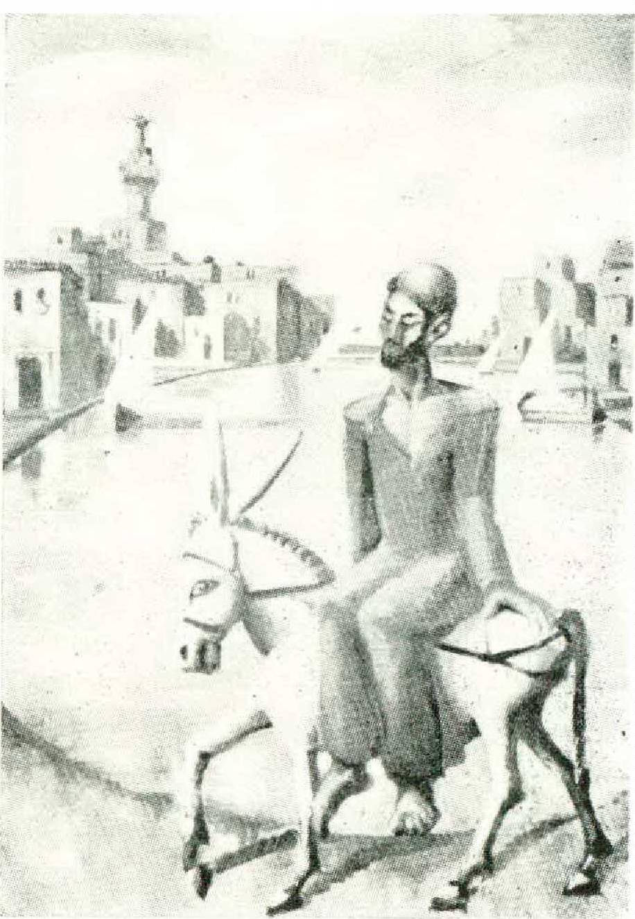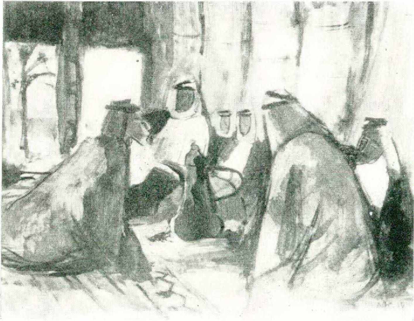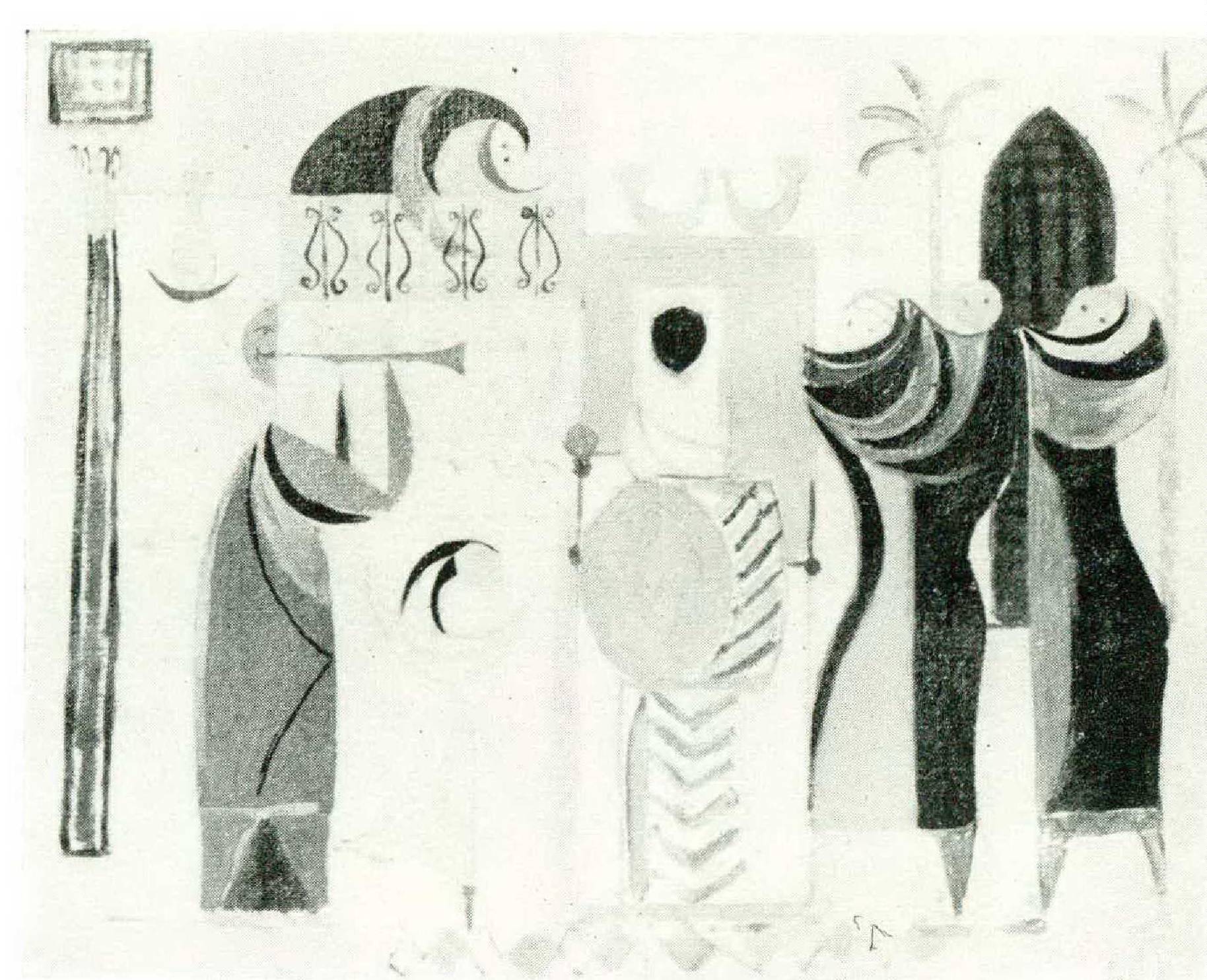 One of the most versatile and gifted of the younger generation of Arab artists is the Iraqi painter and sculptor Jewad Selim (born 1920). His talent won early recognition and it was made possible for him to study in Paris, Rome, and London. Returning to Baghdad, he taught sculpture at the Institute of Fine Arts and became the leader of Iraq’s Modern Art Group. Like many other Arab artists today, Selim is experimenting in various directions to find a personal idiom which will blend the past — the rich inheritance from the Islamic, Babylonian, and even Sumerian cultures — with the present as it reaches him from the West. In an earlier generation, the “father” of modern Iraqi painting was Abdel Kadir el-Rassam (1872-1951), whose romantic landscapes, animated with small figures, suggest the French primitive, Henri Rousseau, though, actually, it was the painters of nineteenth-century Turkey who first stimulated the artists of Iraq, before they were exposed to the modern movements of Europe.