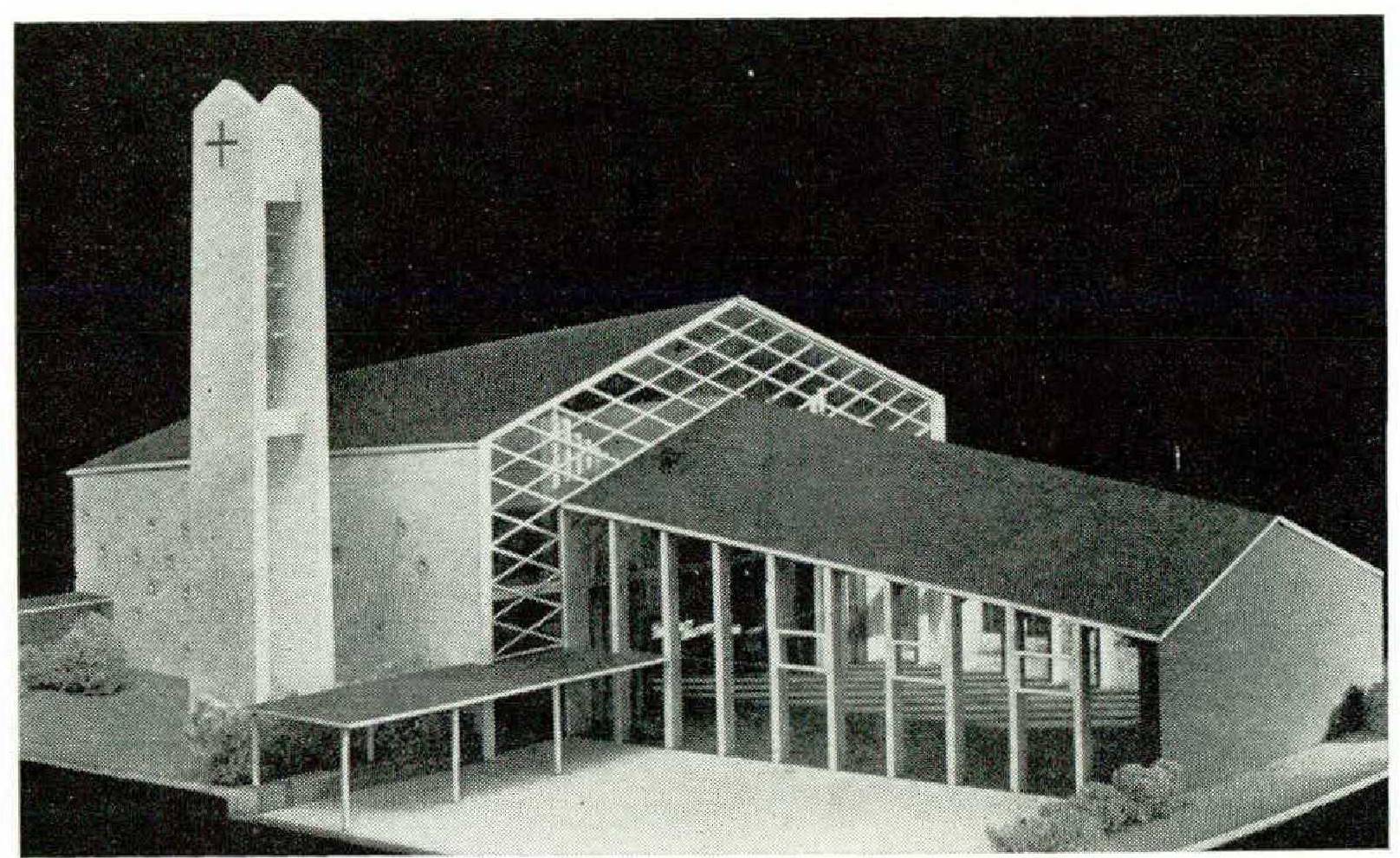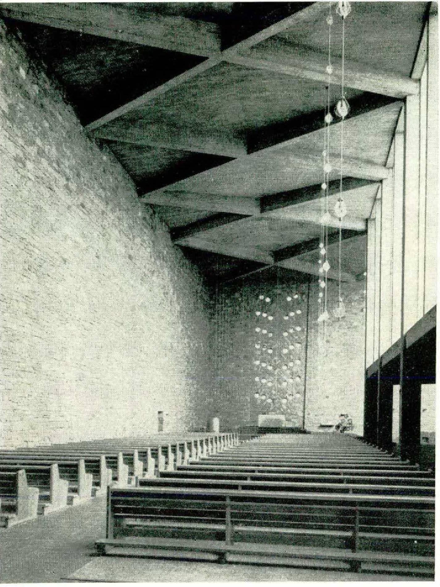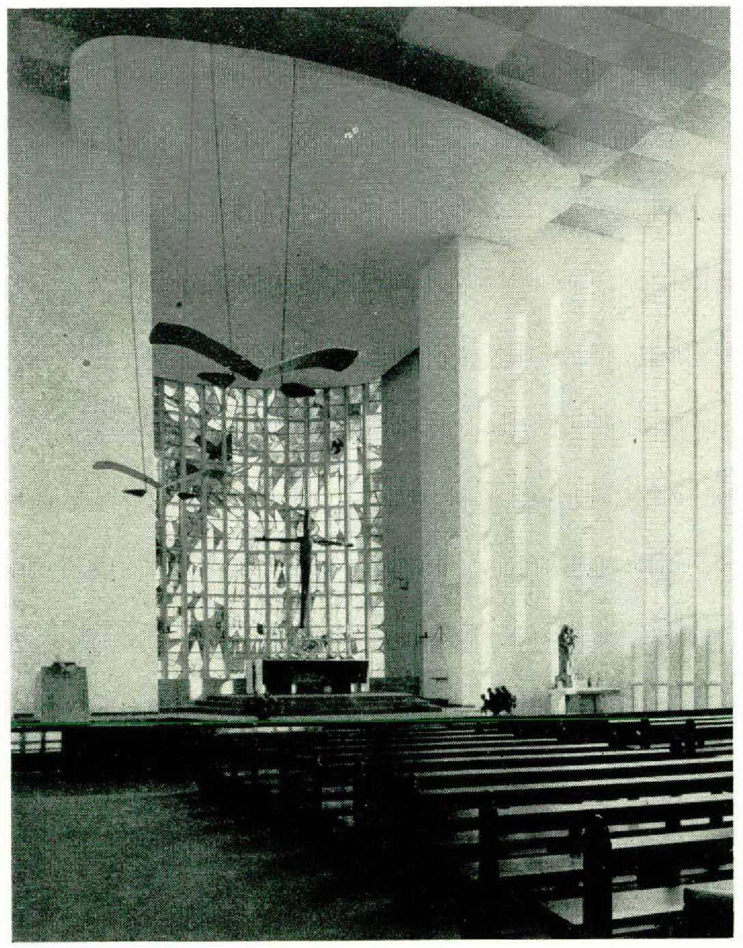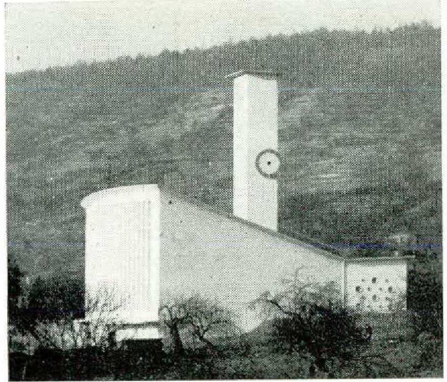Church-building also looks and gropes for new ways. Le Corbusier’s miracle at Ronchamps — the pilgrims’ church on the southwestern slope of the Vosges Mountains — fascinates proponents and opponents far into the North German hinterland. Space limitations unfortunately prevent us from listing details.