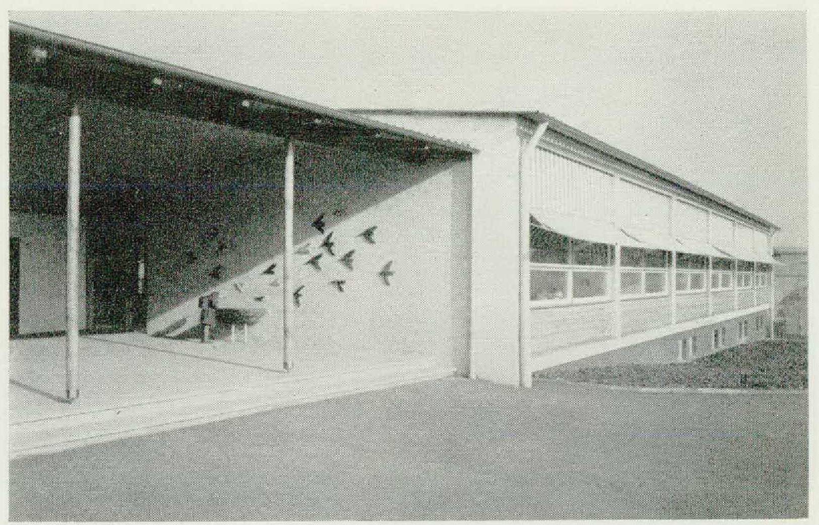 The Devil of forced classicism may have been driven out of German reconstruction only to be replaced with the Beelzebub of a no less barren mass-production style of building—but here and there, on the edges of the official and private building zeal, we note signs of formal imagination. And happily, as the illustrations prove, the signs are increasing. On the one hand, some outstanding men — Ernst May, for instance — have returned from exile; on the other, the younger generation is more and more dissatisfied with the old, obsolete formal canon. Comparisons with neighbor countries, with Rotterdam, Milan, and Genoa, the suburbs of London, the fascinating buildings by Le Corbusier, arouse feelings of inadequacy and occasionally serve to spur competitive boldness. We admit that the illustrations do not show the average; they have been consciously selected from the best. And yet, new impulses are felt even in smaller towns, chiefly in school and hospital buildings: children and sick people are to be given the most modern and the healthiest possible surroundings. Department stores and shops, too, have found that the new architecture is good publicity. Trade-fair pavilions, especially, outdo each other in novelty and daring.