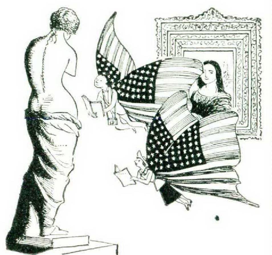 The travel promoters know that Americans like to work hard even on their vacations. They keep them busy round the clock. Many allot half an hour to the Louvre (“just the Mona Lisa and the Venus of Milo”). They now have a six-hour “midnight-sun excursion” by plane. The tourist must be on the move all the time; a quiet day of contemplation might bore him. Americans are no longer Innocents Abroad, as in the days of Mark Twain, but they are still in a hurry. They try to “make” as many sights as possible in a short time. They admire the gratin de langoustines and perdreaux casserole but happily settle for hamburger and ice cream. (The European landscape is dotted with hamburger stands and ice-cream parlors but both are often disappointing.) They busily prepare for total recall back home and collect maps, pictures, souvenirs. A stock cartoon character of the comic papers in Europe during the Wilhelminian era was the German tourist in knickerbockers, carrying his Baedeker, crossing off three-star sights. The current American tourist carries a Dacron suit, camera, ballpoint pen, a popular guidebook telling him where to go after 11 p.m. “while the wife stays at the hotel”; but he, too, busily checks off threestar sights.