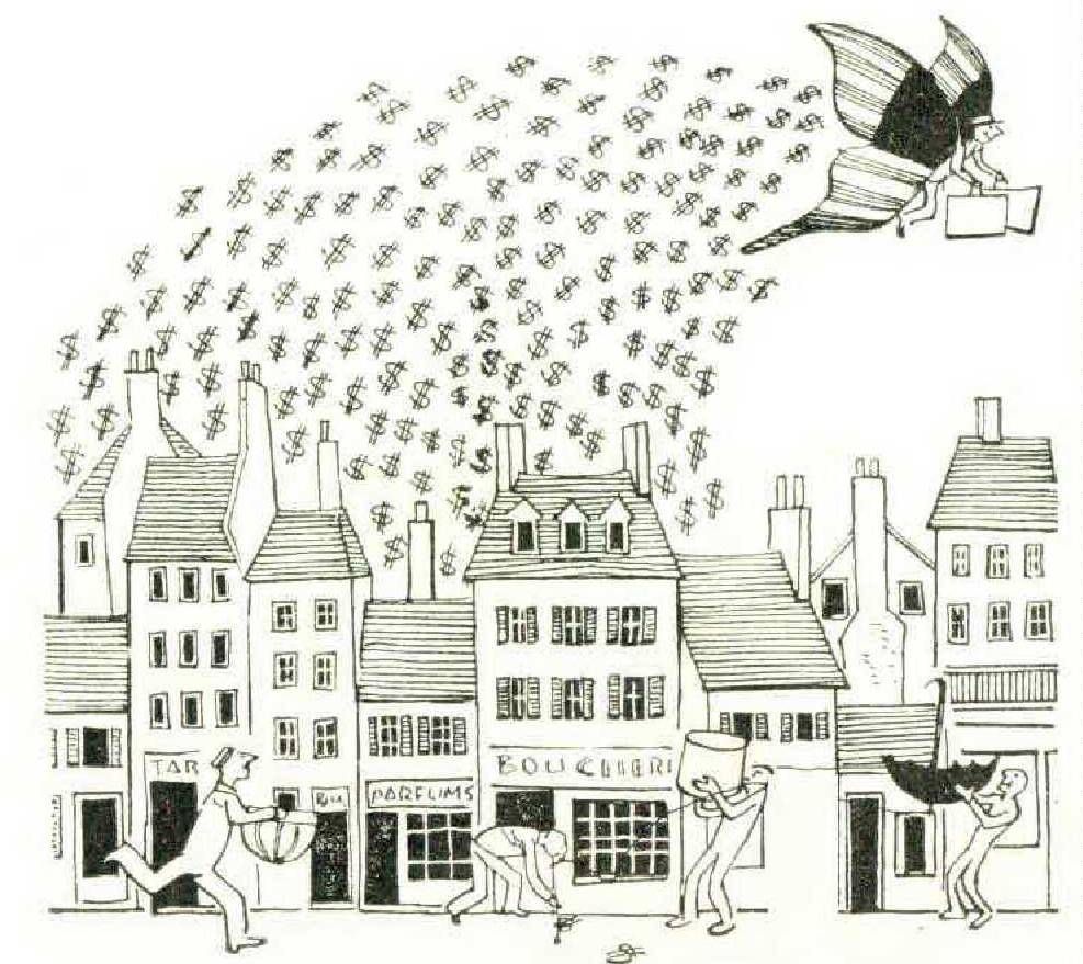 Europeans had to jack up their standards of comfort, cleanliness, transportation. The rickety buses of French film comedies are replaced by Greyhound-style monsters. “Europe’s newest trains compare favorably with America’s Super Chief,” a German paper wrote proudly. All “sights” are classified according to price range. Local “contacts” are mobilized to give the American traveler a chance to meet what is called “real people.” They are about as real as the smart aristocrats who fixed up their dilapidated castles and run them for a small, snobbish minority of well-heeled foreigners who are flattered to pay heavily for this privilege. Everywhere shopkeepers study the American tourists’ taste and stock their shelves accordingly. It is a dubious trend: the traveler often comes away with a polished, inaccurate impression of the foreign scene. It’s like finding out about Paris by taking a bus with the sign “Paris by Night.”