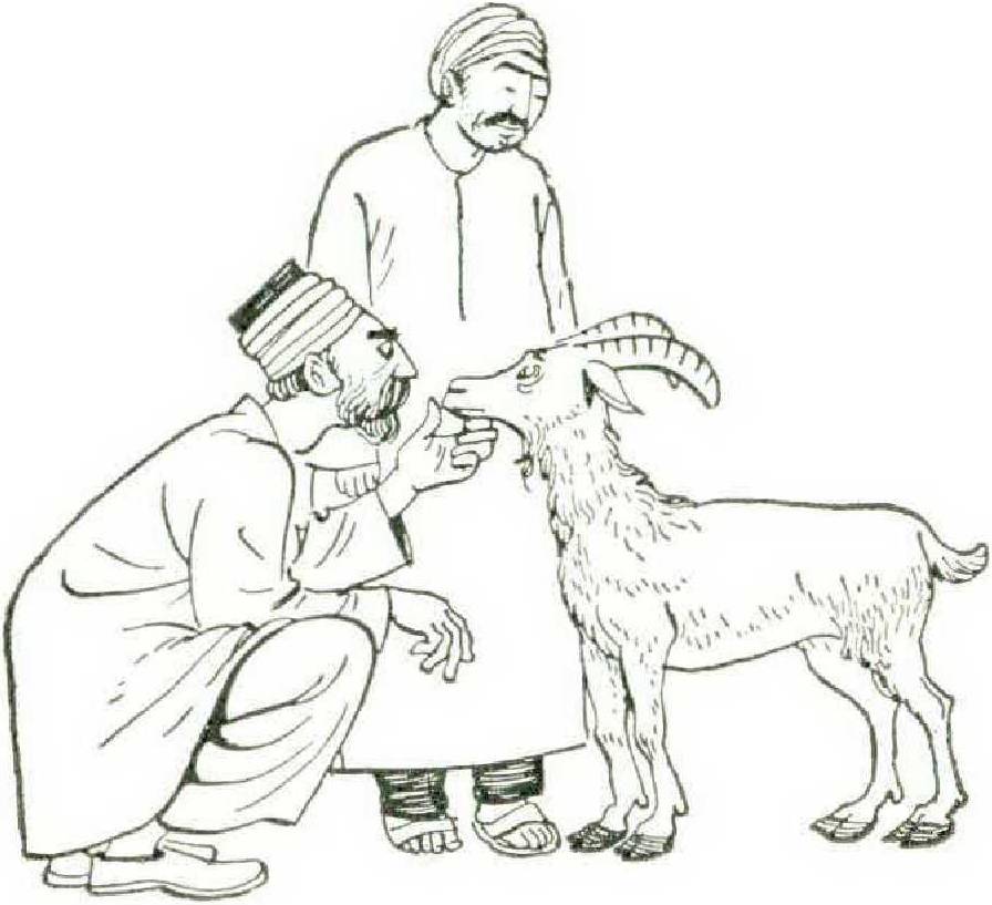 Down in the main square two butchers each killed a goat a day, hung both of them on hooks directly after slaughter, and cut chunks off the carcasses to order. People who were hungry for meat would congregate around the goat candidates each evening and discuss the animals’ personalities, brightness of eyes, and general appearance, as a prelude to deciding upon the butcher they would patronize tlie next day, Muslims require that their meat be killed on the same day it is consumed, if possible, and that slaughtering be done by throat slitting and slow bleeding. Pork is forbidden by the religion and so is alcohol. Muslim dietary rules resemble the Jewish ones, but there are no professional priests or rabbis in Islam to kasher. On feast days, when everyone would be ordering meat, the main square in the early morning was crowded with expiring animals. Open sanitation trenches with water running through them carried away the blood, and the village dogs fattened on what little else was not salable. Our initial impression of squalor soon changed as we saw illustrations of the village’s own brand of cleanliness, achieved by cold running water. They had plenty of it, and every house had a flush toilet and a washroom. The people of Juml of necessity lived closely with their animals, but cows and donkeys are not dirty to peasants. Little by little our airconditioned chrome-plated American prejudices fell away from us as we saw every item of food carefully washed and every house scrubbed clown daily.