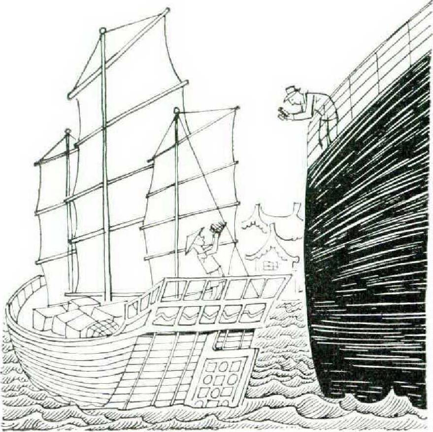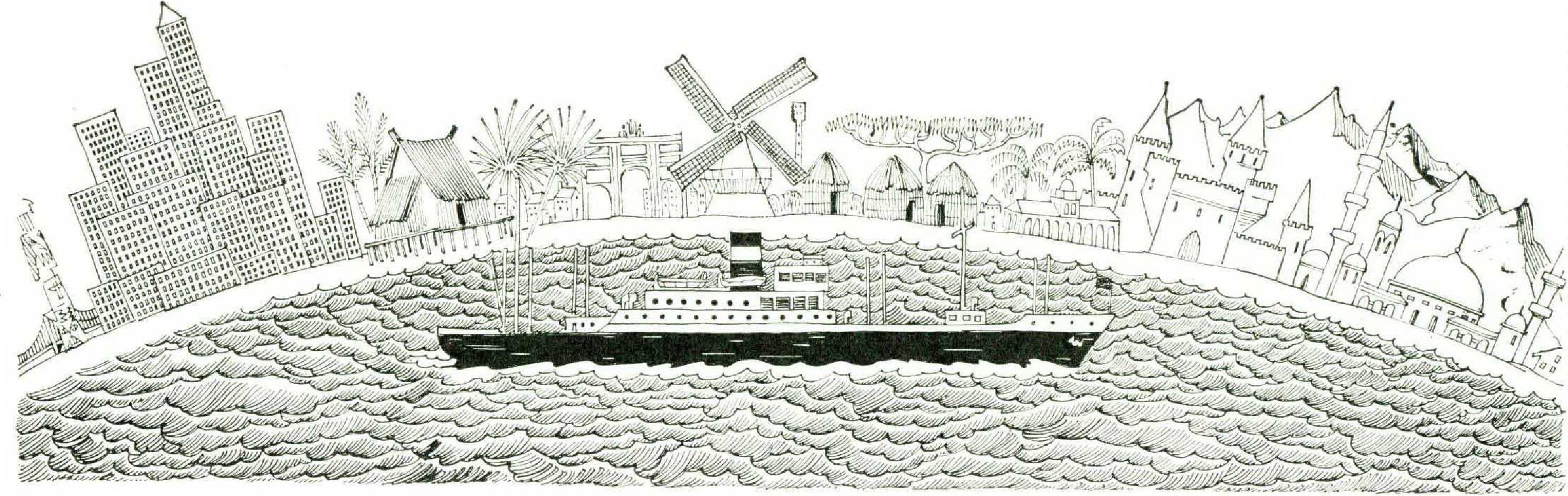 A freighter sails the moment the last piece of cargo is aboard and not a moment before. It will go to any other port for cargo when sufficient inducement is offered. All this makes freighter itineraries extremely vague. One never knows exactly from which port a freighter will leave, and a passage ticket typically reads “from last U.S. port to first Japanese port.” Ports are added to or dropped from itineraries after the vessels sail. On one ship bound to London the entire cargo was sold in mid-Atlantic to a merchant in Hamburg, and the ship took it there instead. Often a shipmaster, Europe bound, does not know until twenty-four hours before arrival which Continental port he is to enter first.