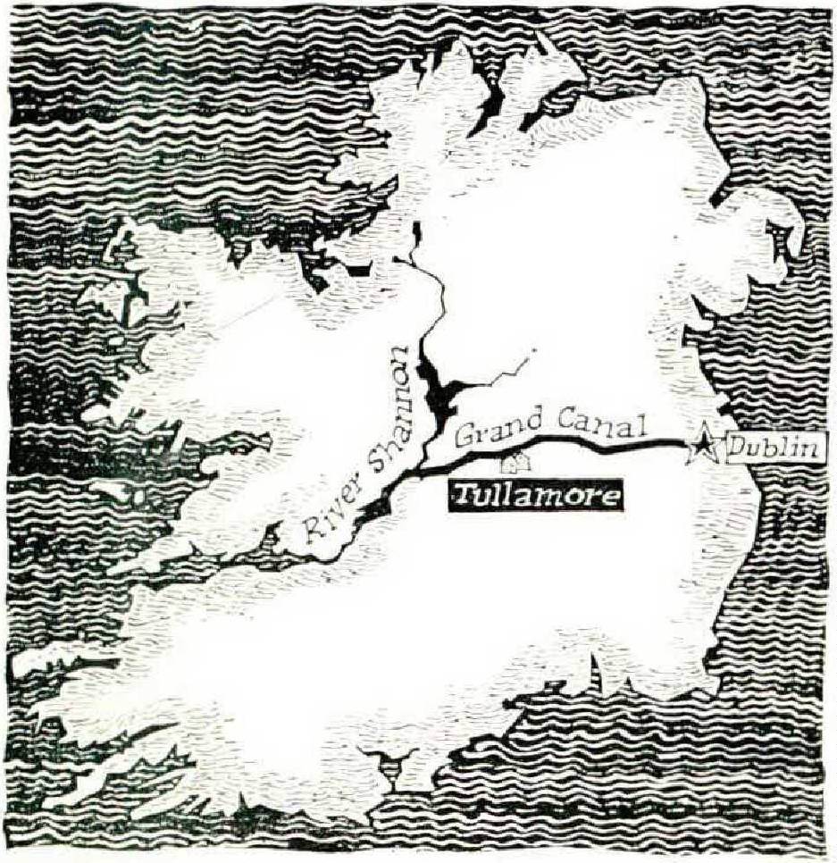 At Tullamore, a large town as Irish towns go, we stopped for baths and provisions. Provisions were easy, for Tullamore boasts two supermarkets in addition to its cinema, modern school, and D. E. Williams Company, distillers of the famous Tullamore Dew. “Give Every Man His DEW!” is D. E. Williams’ slogan, prominently displayed about the town.