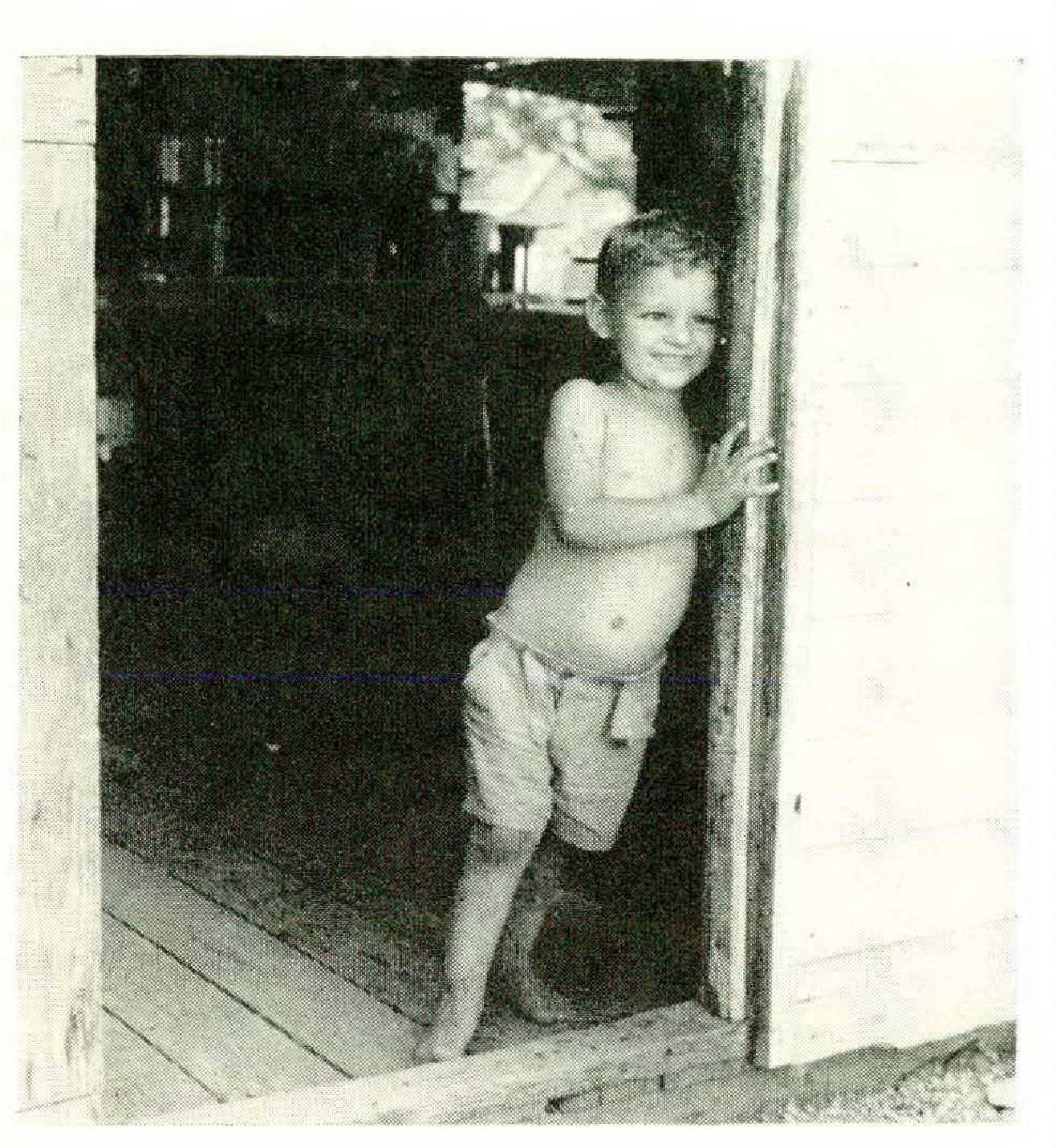 The migrant child may never develop any idea of home. His family is never in any place long enough, and home to him is wherever he happens to be. He seldom sees a doctor. It is almost certain that he will have pinworms and diarrhea. Other common ailments untreated are contagious skin infections, acute febrile tonsillitis, asthma, iron deficiency anemia, and disabling physical handicaps. A poor diet condemns the child from the start. A report on a camp in Mathis, Texas, showed that 96 percent of the children had not drunk milk in six months. Their diet consisted mainly of cornmeal and rice. A doctor commenting on the report said there was evidence of ordinary starvation. The migrant child is prone to scurvy, rickets, and kwashiorkor — a severe protein deficiency. Some reports have put the incidence of dental abnormalities at 95 percent, and others said that bad teeth were universal.
