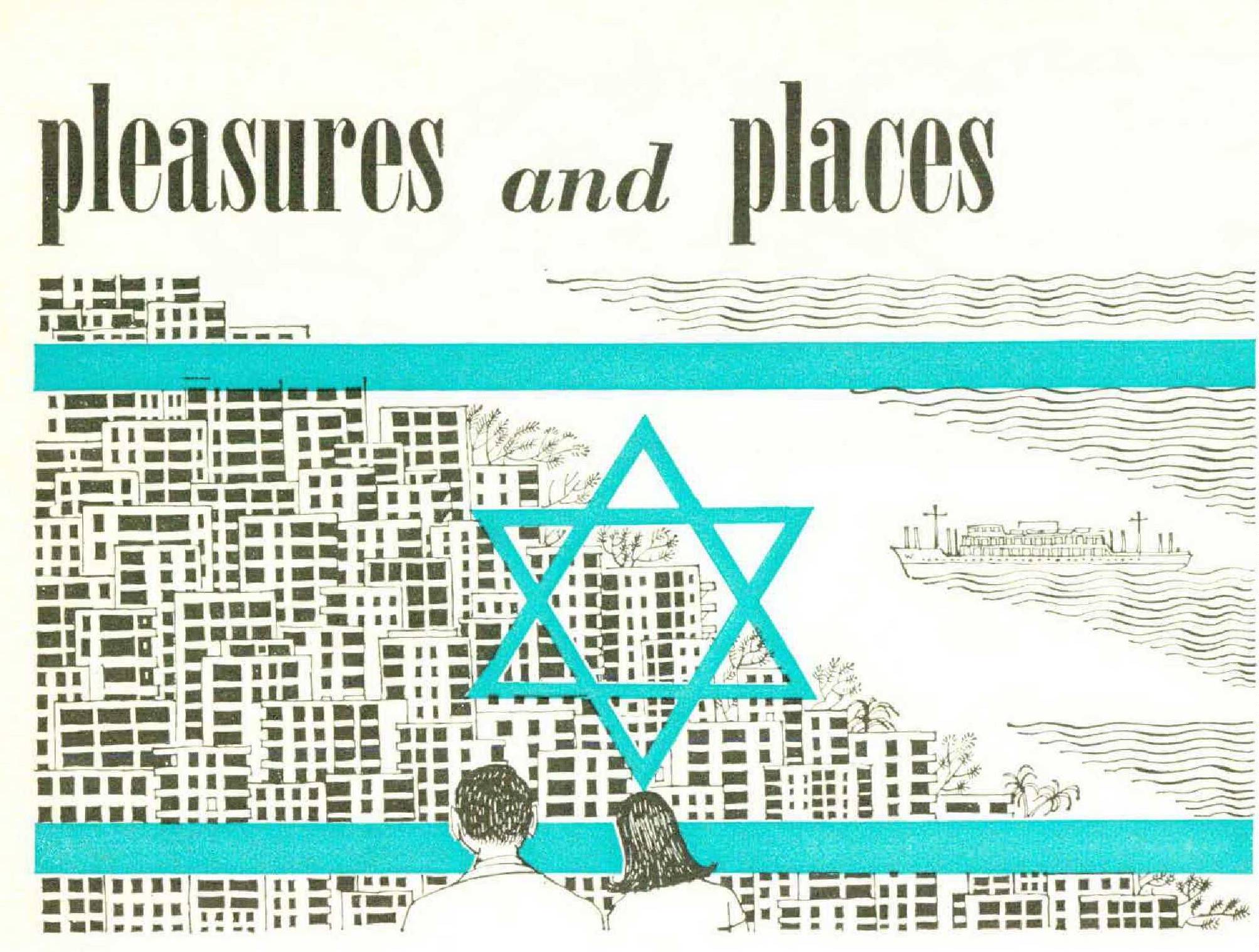Jane and I take breakfast at the hotel, and also one other meal, midday or evening — one’s as big as the other. This half-board arrangement costs forty-seven lirot per day for two, which is about $15.50, to which must be added 10 percent service charge. This is cheap, but then the Shulamit is no Grand Hotel. It is a pension despite its pine garden, view of Haifa Bay, the Zebulon Valley, and the mountains of Galilee. The food is definitely pension food, and kosher.