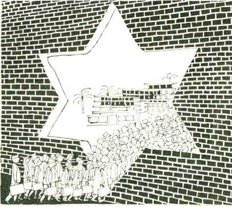 At the Rehov Ha’atsmaut curb stand an uneven line of cabs, many shapes and international sizes but mostly enormous De Sotos, the kind which clogged the streets of New York in the late 1940s and early 1950s — in fact, as I later learned, the very same ones, and looking remarkably bone-weary now. To the starter at the head of the line, I announce our destination: Hotel Shulamit. Shulamit, Shulamite, we like the sound of the name, part of the reason why we selected it. The driver, however, does not know the place. Obviously, he is a newcomer in the country, and, as obviously, a Moroccan. The starter explains the route to the driver. He tells us how much the fare will be. After first collecting our bags, we begin the ascent; we are part of the latest migration or aliyah — that is, the tourist aliyah.