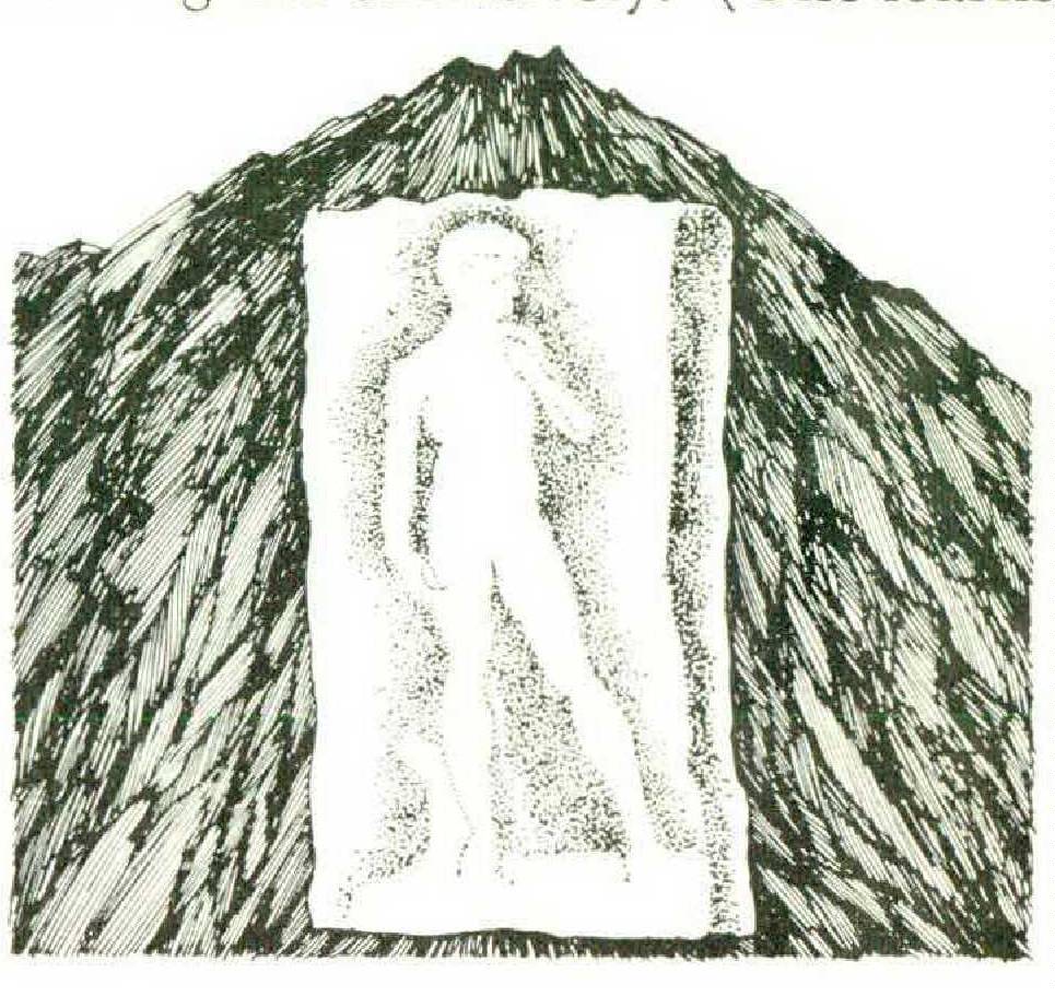 The Apuan Alps are a pocket range of extreme ruggedness whose principal peaks, just ten miles back from the sea, exceed five and six thousand feet in height. The impressive thing about these mountains in a country with many taller summits is that they rise right from sea level to more than a mile into the sky, with nothing but a narrow strip of coast separating them from the Mediterranean. So it is an absolutely clean and sudden six thousand feet. Also impressive is the concentration of these alps. Compressed into a very small area, this pile of jagged peaks and sharp ridges appears to be one massive impenetrable barrier of bare, awful rock; and for the most part is. Yet in the midst of this stony wilderness one finds a tremendous industry of mountaintop quarrying. And up in the cul-de-sac valleys, in tiny gloomy towns that are remote, though fifteen minutes from the center of modern Massa, lives a population of marble cutters, a people of remarkable, even heroic, endurance.