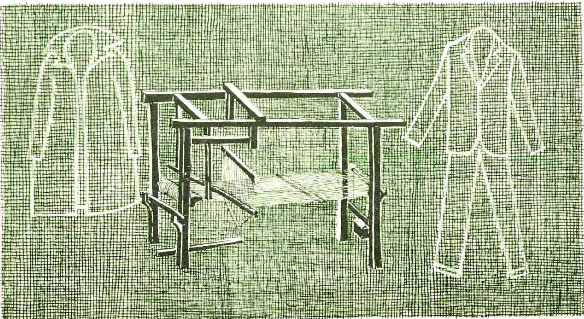 I visited Pringle Macaulay, weaver who lives on a croft at a tiny village called Shadder, about eight miles from Stornoway. Like most of the weavers on the islands, he had his loom set up in a shed near the house. In this case the shed was originally a “black house,” as the old crofters’ cottages were called. There were two rooms with thick stone walls covered with remnants of plaster and paper. In one corner was an open hearth, with hooks still dangling from a crude chimney where the cooking pots used to hangover the fire. I watched Mr. Macaulay half sit, half lean on a high stool that tilted forward. As he moved his feet on the treadle, the boat-shaped wooden shuttles whizzed back and forth and the loom clattered. Harris tweed was in the making. “It’s the foot rhythm,” he said. “Once you’ve got that you’re away.” I asked him how long it took to complete a length, and he said he worked an average of three tweeds per week, taking about thirteen hours per length. Ordinary tweed pays about £7 a length, and a more complicated pattern such as a tartan tweed pays £8.10. “It keeps me happy, and I always knock off work at lunchtime every Friday for the weekend.” Foolishly I agreed to Mr. Macaulay’s suggestion to “have a go” at the loom. Apart from discovering it was very hard work, I also found I had no sense of weavers’ rhythm. One of the shuttles failed to return, and the thread broke.