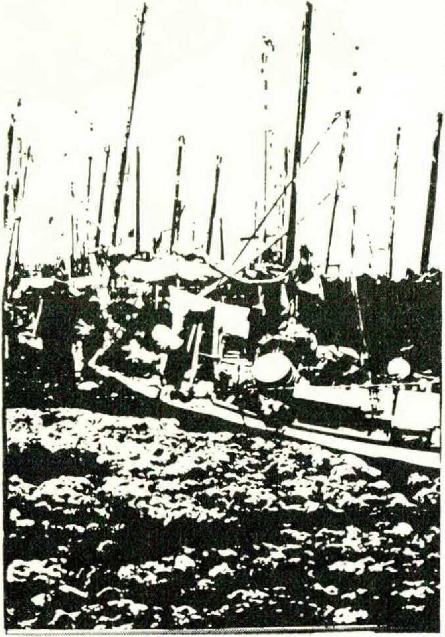 Hooker boats are those on which men use a long pole with a hook at the end to drag up sponges. The depth limit is thirty feet, and any surface action of the water interferes with the operation by disturbing the view. The best sponges grow in water deeper than thirty feet. To call this method “a poor way” was polite understatement, for to men from the Dodecanese, accustomed to working in strong currents at dangerous depths, hooking must have seemed a feckless habit.
