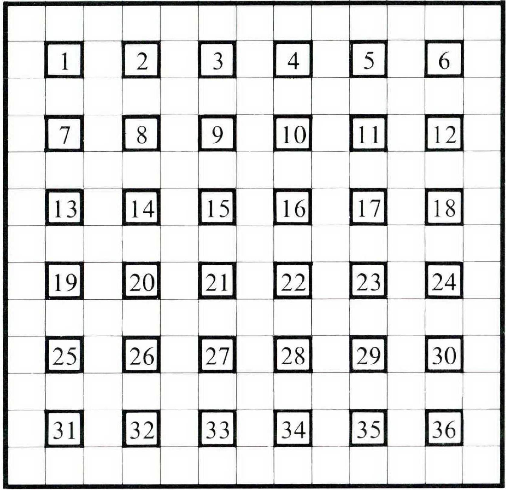 Each numbered square in the diagram is surrounded by eight blank squares. All clues lead to words of eight letters, to be entered in the squares around their appropriate numbers; the words may run clockwise or counter-clockwise, beginning anywhere. Solvers will have to determine where each word begins and the direction in which it is to go. One answer, 6, is not common. Remember that punctuation in the clues may be used deceptively.