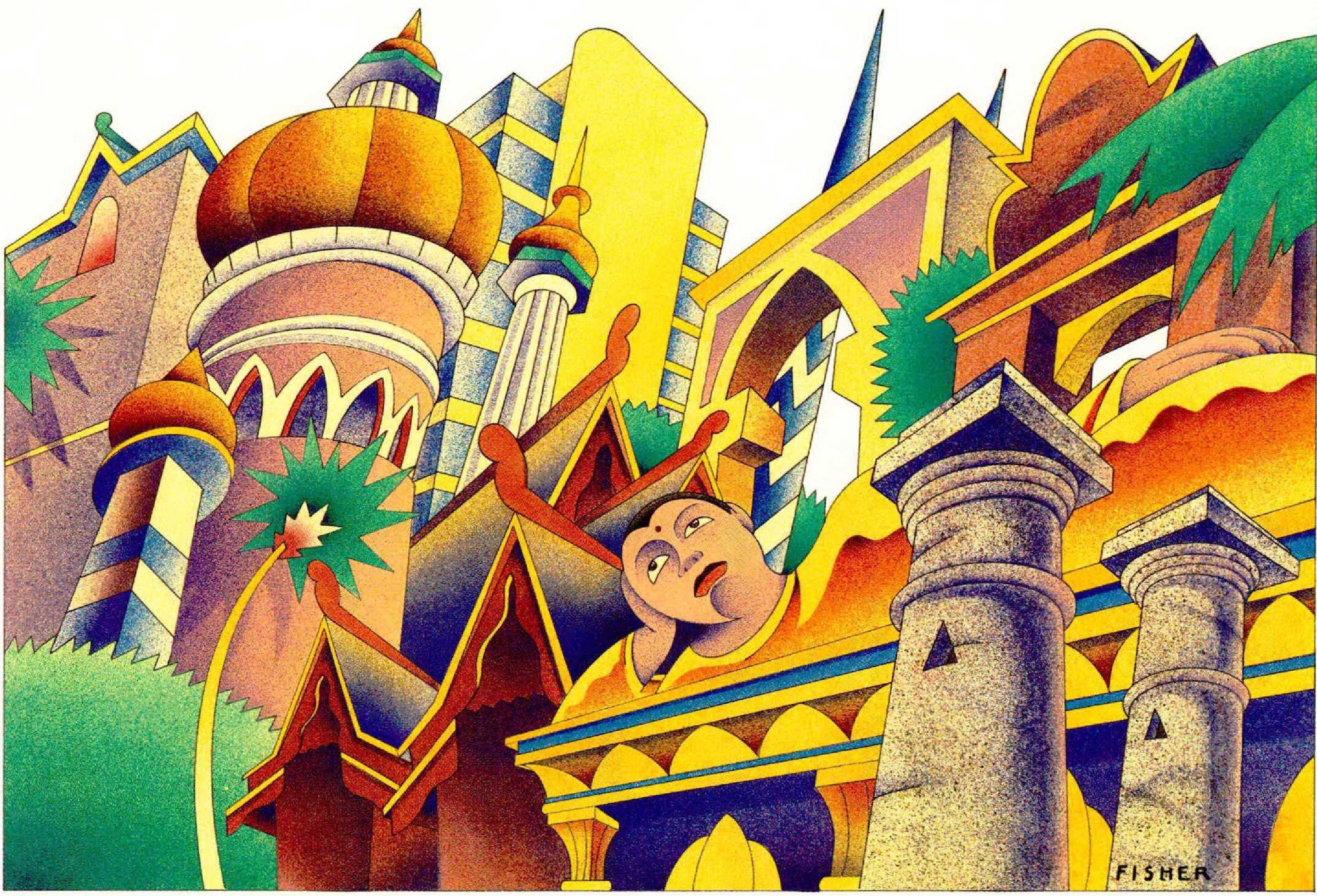 M ALAYSIA IS OFF the track for most Americans, and few end Up there except when heading someplace else in Southeast Asia. Last summer my wife and I were at a resort, along with 600 other vacationers, on the Malaysian east coast. Before the evening variety-show entertainment the emcee worked up the crowd with a standard routine: Let’s hear it for the people from . . . AUSTRALIA!!! (Huge cheer.) Is anyone here from . . . JAPAN!!! (Louder still.) He went on to Hong Kong, Luxembourg, and New Zealand, and didn’t even mention the United States.