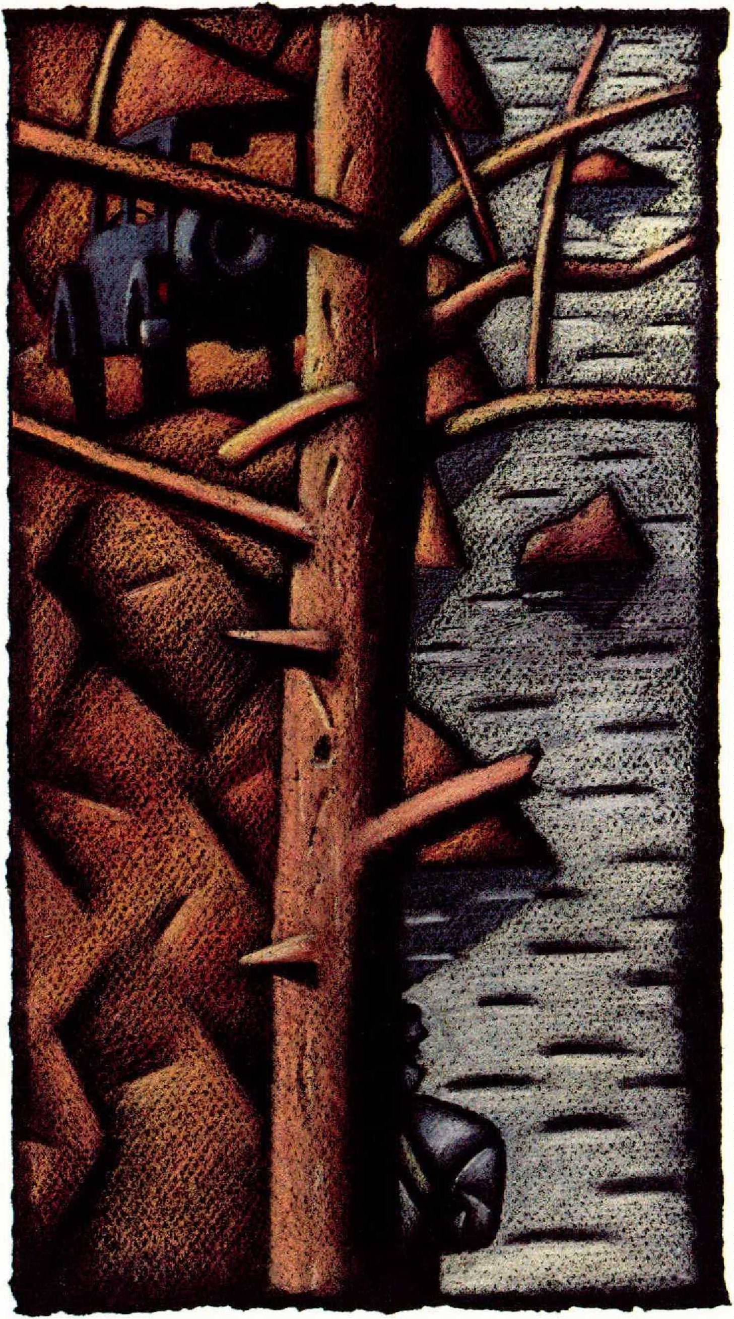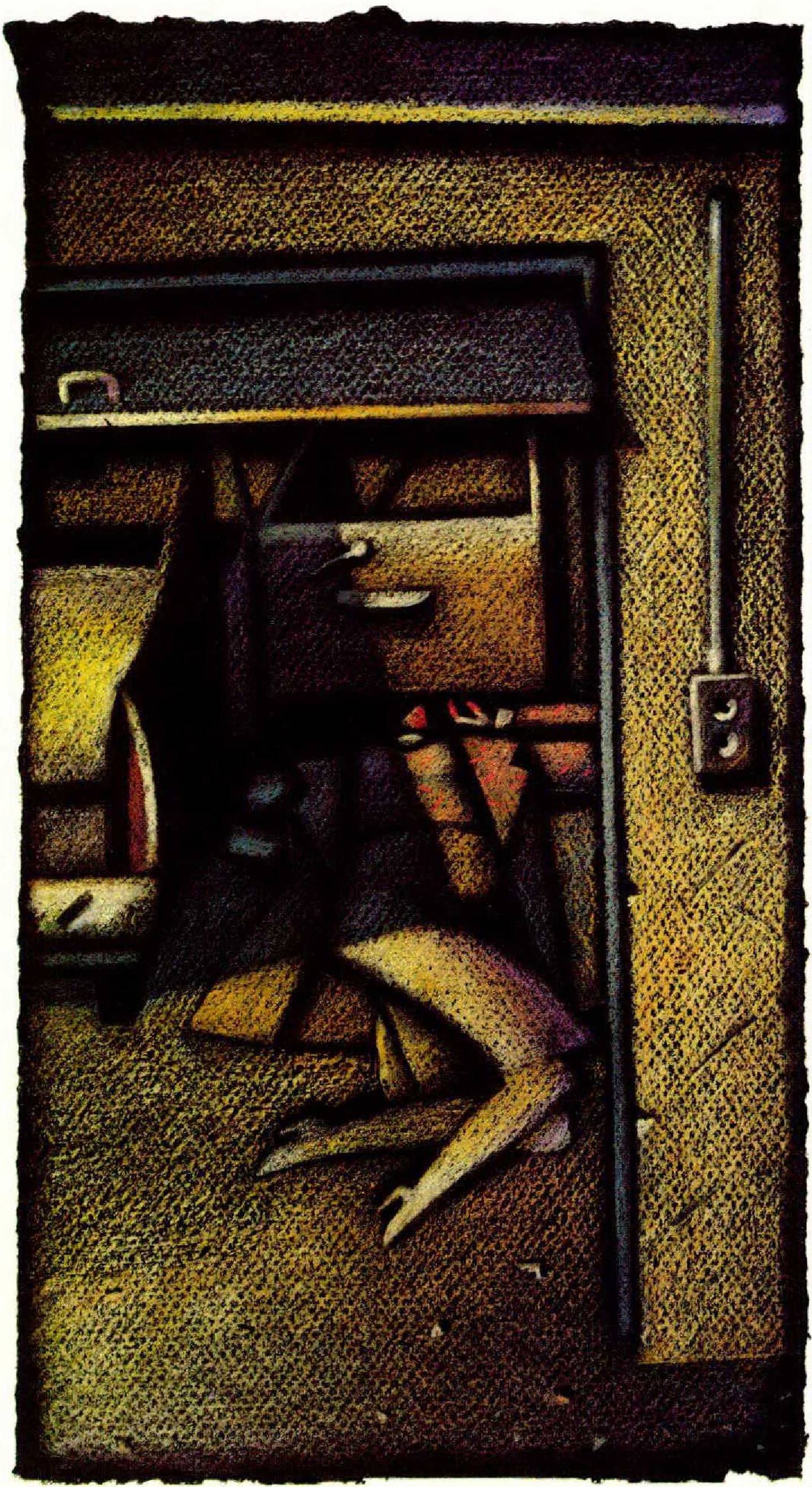 Behind the mall, down the road from Everbloom’s, the receiving platforms stood on iron legs, backed against the cement block, the cheap side of the stores. Weather swept over the blacktop, pooling where the graders hadn’t got it right. On raw bulldozed ground beyond the blacktop, weeds and a fewstringy locusts tried to start a forest again. A tree line the bulldozers wouldn’t get to for a few years drifted into the mist at the end of this world. Nobody ever came back there unless a truck was unloading. I hunched under a dock.