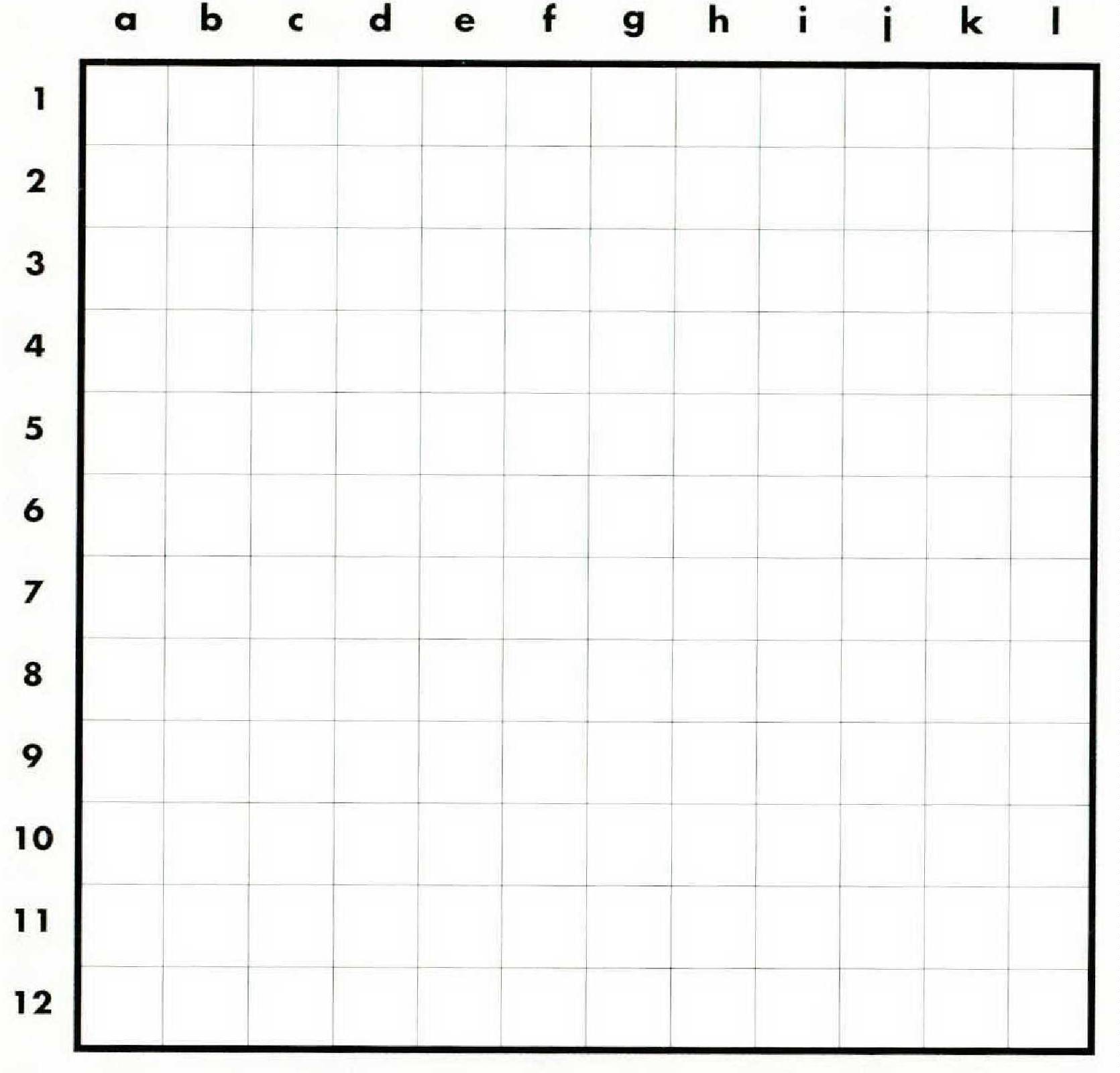 You are the navigator of the starship Atlantic, approaching a treacherous region of space known to be full of irregularly scattered asteroids. To chart the region with your Asteroid Detector, you have sent out Across probes (1-12) and Down probes (a-l), which you must display on your screen (the diagram at right). Each probe consists of one or two words clued in order. Wherever an Across probe fails to intersect with a Down probe, there must be an asteroid. This should be represented on your screen as a black square. A probe may be interrupted by any number of asteroids and in any place. Happy mapping!