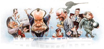 In an ABC interview two weeks before the 2006 midterms, George Stephanopoulos asked Bush where the compromise might be on Iraq between the dueling political buzz phrases stay the course and cut and run. Bush’s response: “Well, hey, listen, we’ve never been ‘stay the course,’ George …” Liberal bloggers quickly posted on YouTube a hilarious montage of Bush using that exact phrase repeatedly. “The president of the United States is not a fact-checker,” White House communications director Dan Bartlett blurted out at a July 18, 2003, briefing about what the president knew, and when he knew it, regarding British intelligence reports of Saddam Hussein’s agents prowling around Africa in search of enriched uranium.