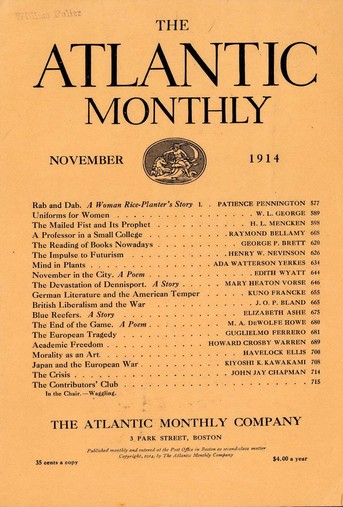 Explore the November 1914 print edition below. Or to discover more writing from the pages of The Atlantic, browse the full archive.