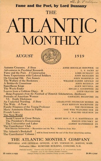 Explore the August 1919 print edition below. Or to discover more writing from the pages of The Atlantic, browse the full archive.