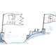 Trump in suit smirks beside an American flag