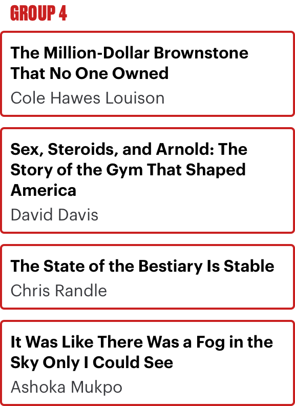 The second round of our Longreads Bracket is here! Our judges read 16 of the most talked-about pieces of journalism published in August to find the one that’s most worth your time.