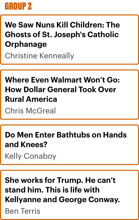 Group 2 Winner: "We Saw Nuns Kill Children: The Ghosts of St. Joseph's Catholic Orphanage," by Christine Kenneally (Buzzfeed News)