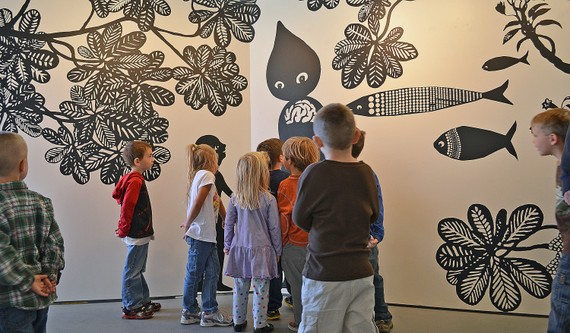 Eastport school children viewing TIMA exhibit of work by Andrea Dezso