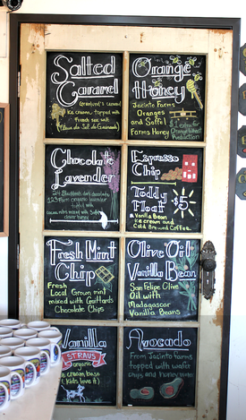 The list of ice creams on the A la Minute board says a lot for the creativity of the owners and the commitment to being local. And as I learned, the flavors are inspired by the local ingredients: honey from Soffel Farms, mint from his own garden, local Redlands oranges, and nearby olive oil , apples, lavender, pumpkin, etc. I chose the orange honey. Why not? I was in Redlands, after all, an orange growing center of California. It was delicious.